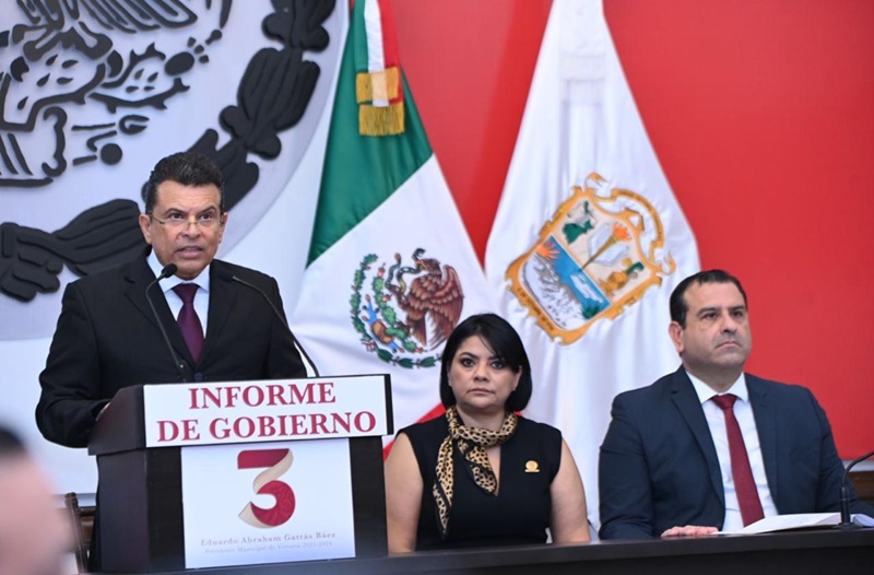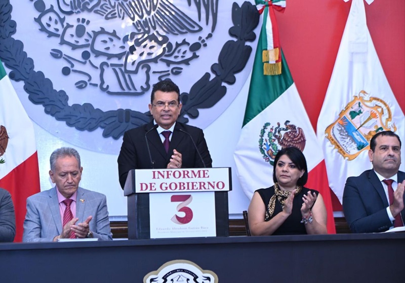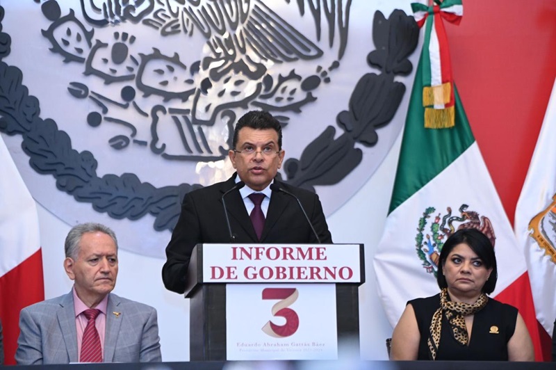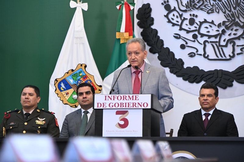 CIUDAD VICTORIA, TAMPS. A seguir transformando un futuro de bienestar y desarrollo próspero para Victoria, se comprometió el Presidente Municipal Eduardo Gattás Báez, al rendir este martes su Tercer Informe de Gobierno ante la sociedad victorense, en el que recibió el respaldo del gobernador Américo Villarreal Anaya para consolidar los proyectos que se tiene en marcha en la Capital del Estado.