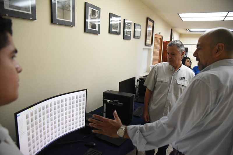 Chucho Nader detalló que para llevar a cabo este interesante proceso de rescate y preservación documental del Archivo Histórico, se incorporó un moderno sistema de cómputo, escáners y cámaras de fotografías digitales con lente cenital para facilitar la captura de planos, periódicos, y documentos diversos.