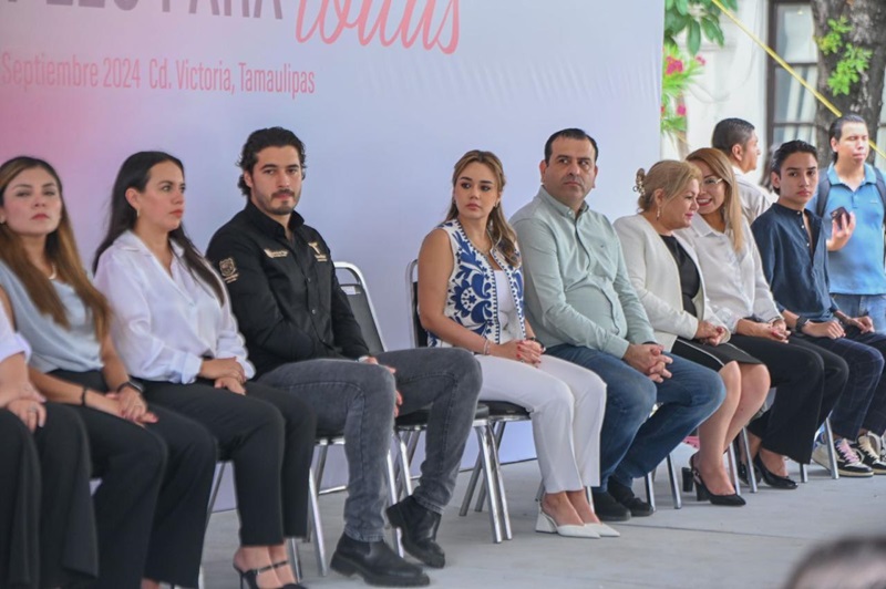 En el evento celebrado en la explanada de la Presidencia Municipal, participaron por Secretaría de Bienestar Social del Estado Lic. Juana Rodríguez Arellano, del Instituto de las Mujeres en Tamaulipas la Lic. Mitzy Selene Valdez Murillo y Lorena Perales Salinas de la Comisión Estatal de Atención a Víctimas.