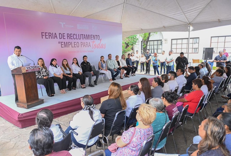 CIUDAD VICTORIA, TAMPS. Con una oferta laboral de más de 600 empleos exclusivos para mujeres, el Gobierno de Victoria llevó a cabo, en colaboración con 29 empresas locales, la Feria de Reclutamiento “Empleo para Todas” con el propósito de seguir construyendo un mejor futuro para las mujeres victorenses.