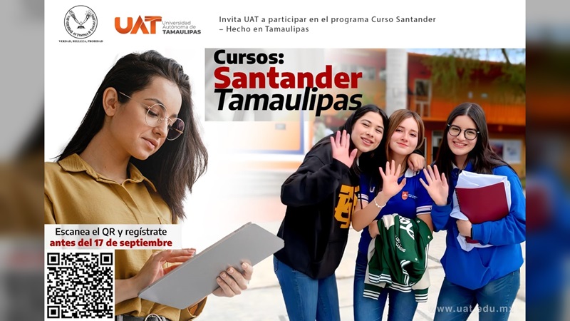 CIUDAD VICTORIA, TAMPS. La Universidad Autónoma de Tamaulipas (UAT) hace extensiva a sus estudiantes la invitación a integrarse al programa Curso Santander-Hecho en Tamaulipas, una iniciativa conjunta de Grupo Santander, la Secretaría de Economía de Tamaulipas y la Secretaría del Trabajo y Previsión Social a través del INJUVE.