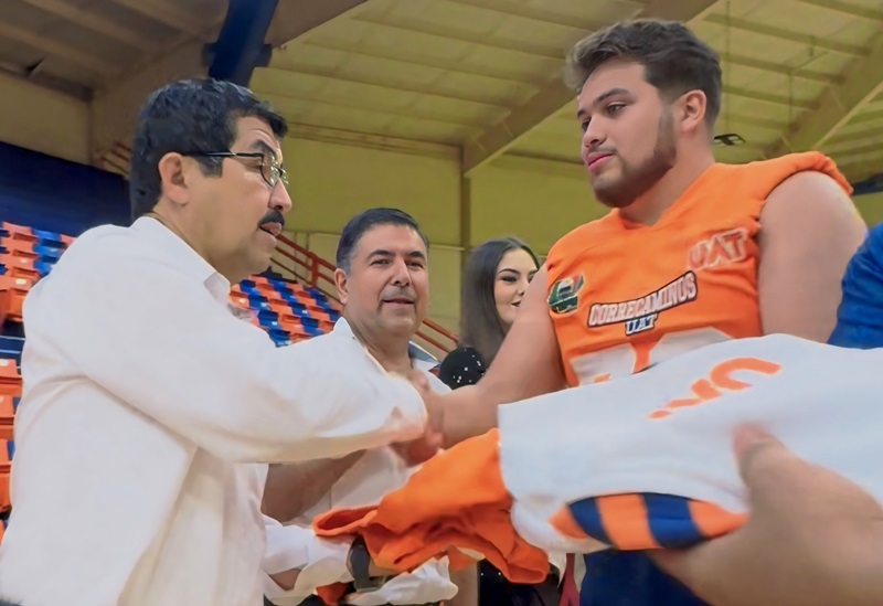 Destacó que este año serán nueve equipos los que compitan en la liga de futbol americano de la ONEFA, por lo que exhortó a los jugadores de Correcaminos Liga Mayor a dar todo su esfuerzo para poner muy en alto, dentro y fuera de la cancha, el nombre de la máxima casa de estudios de Tamaulipas.