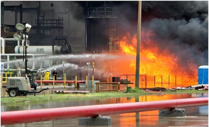 AGENCIAS. Este sábado 7 de septiembre se reportó un incendio en la Refinería Ingeniero Antonio Dovalí Jaime, de Pemex, ubicada en Salina Cruz, Oaxaca, lo que provocó alarma entre la población del puerto de Salina Cruz, debido a las enormes columnas de humo negro que cubrió la ciudad tras una torrencial lluvia.