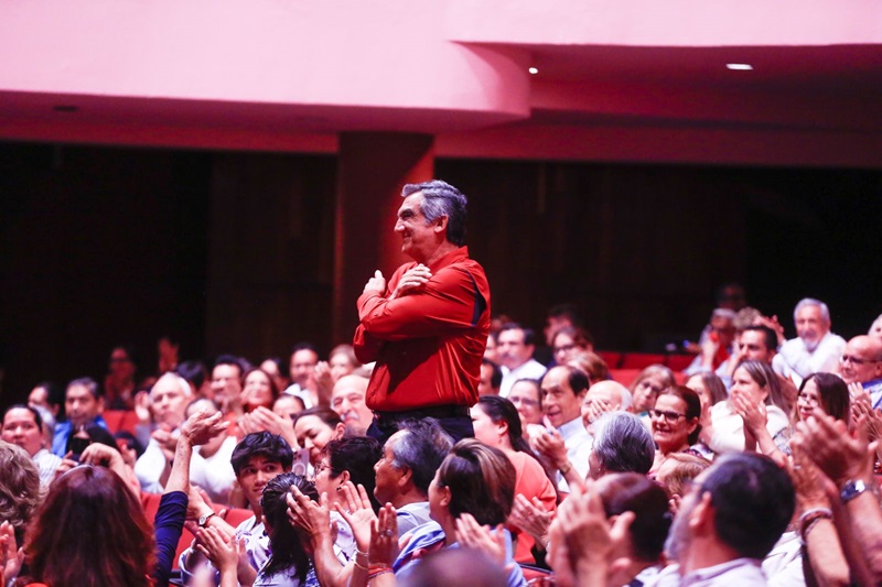 Acompañado por la presidenta del DIF Tamaulipas, doctora María de Villarreal, el gobernador disfrutó del concierto de gala durante dos horas en el teatro Amalia G. de Castillo Ledón, y recordó los inicios de la rondalla y su participación en los congresos médicos organizados en el Hospital General.