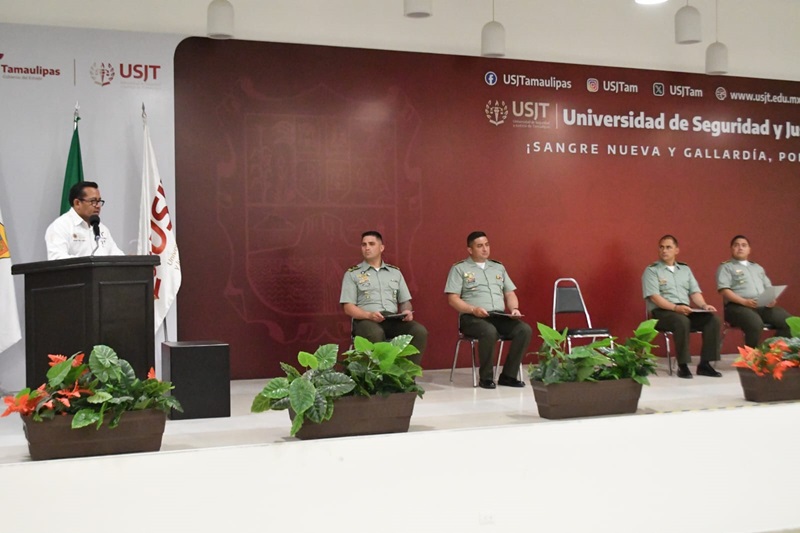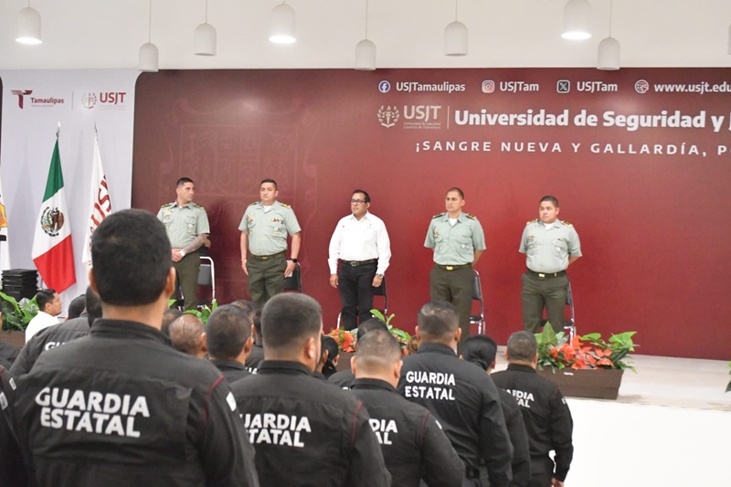 En una ceremonia que tuvo como sede el auditorio de la Universidad de Seguridad y Justicia de Tamaulipas (USJT) las y los guardias estatales participantes recibieron una constancia que acredita los conocimientos y habilidades adquiridos, además de un distintivo otorgado por la Policía Nacional de Colombia.