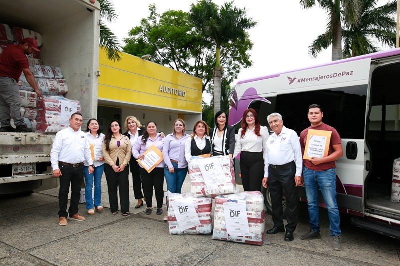 • En la primera entrega anual se distribuyen más de 3 mil 400 paquetes con pañales, toallas húmedas y suplementos alimenticios en los 43 municipios
