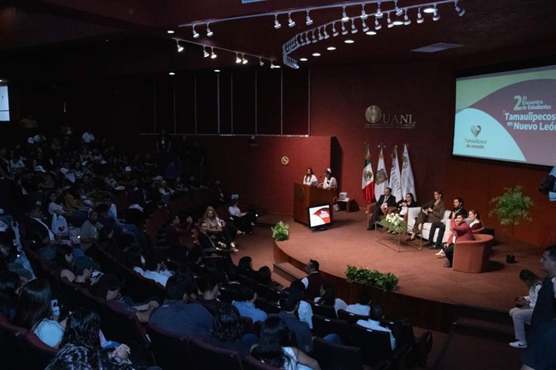 Durante el Segundo Encuentro de Estudiantes Tamaulipecos en Nuevo León, organizado por la Oficina de Representación de Tamaulipas en Nuevo León, y celebrado en la Biblioteca «Raúl Rangel Frías» de la Universidad Autónoma de Nuevo León, la secretaria de Educación, Lucía Aimé Castillo Pastor, y el secretario del Trabajo, Gerardo Illoldi Reyes, hicieron un llamado a los jóvenes universitarios a conocer las acciones y proyectos que impulsa el gobernador Américo Villarreal Anaya para lograr el desarrollo y bienestar de las y los tamaulipecos.