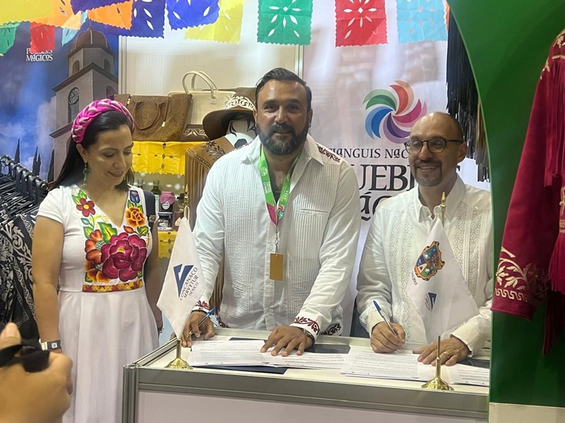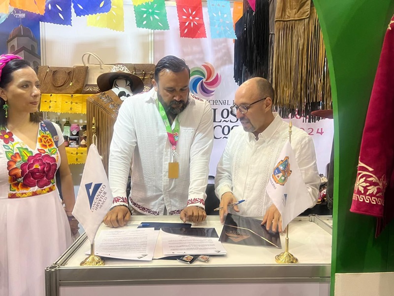 BOCA DEL RÍO, VERACRUZ. En el marco del Tianguis Nacional de Pueblos Mágicos, el secretario de Turismo de Tamaulipas, Benjamín Hernández Rodríguez, firmó un convenio con Octavio de la Torre de Stéffano, presidente de la Confederación de Cámaras Nacionales de Comercio, Servicios y Turismo (Concanaco-Servytur), para impulsar la competitividad y el turismo del estado.