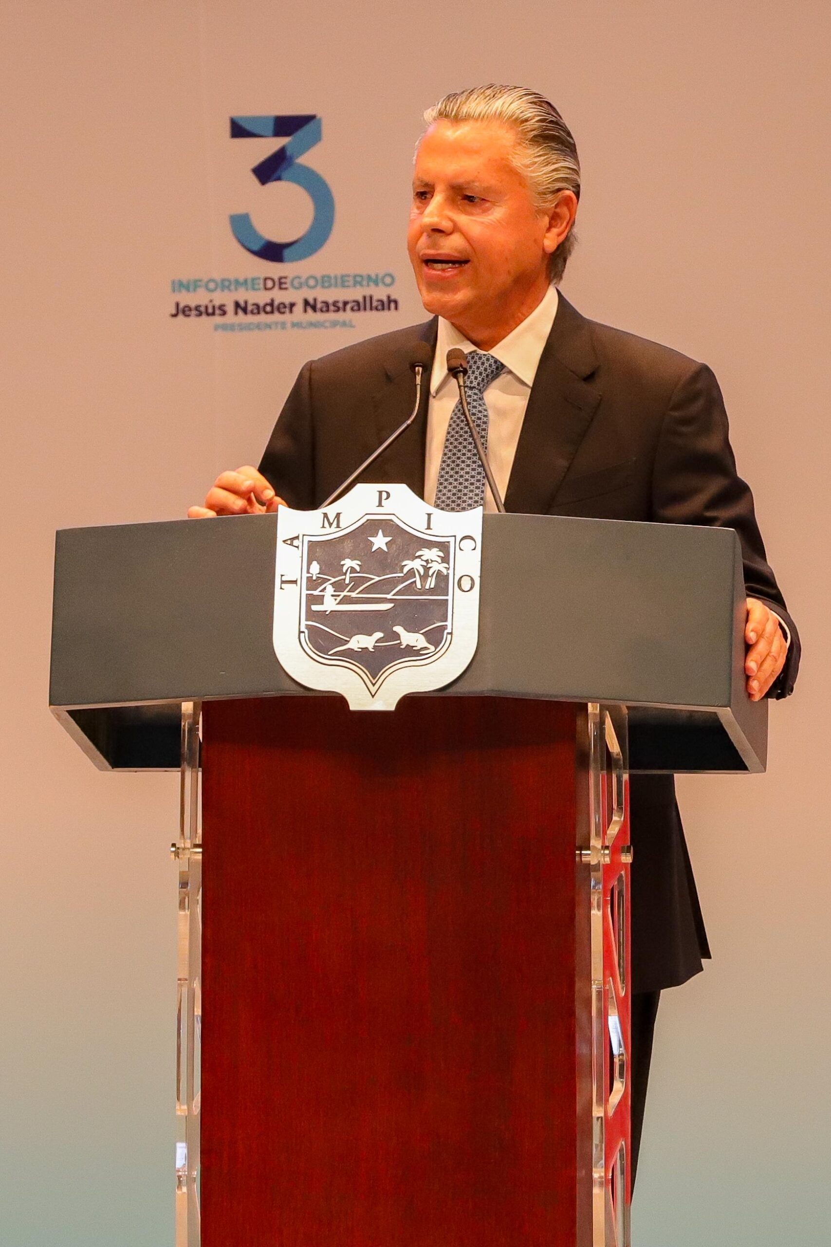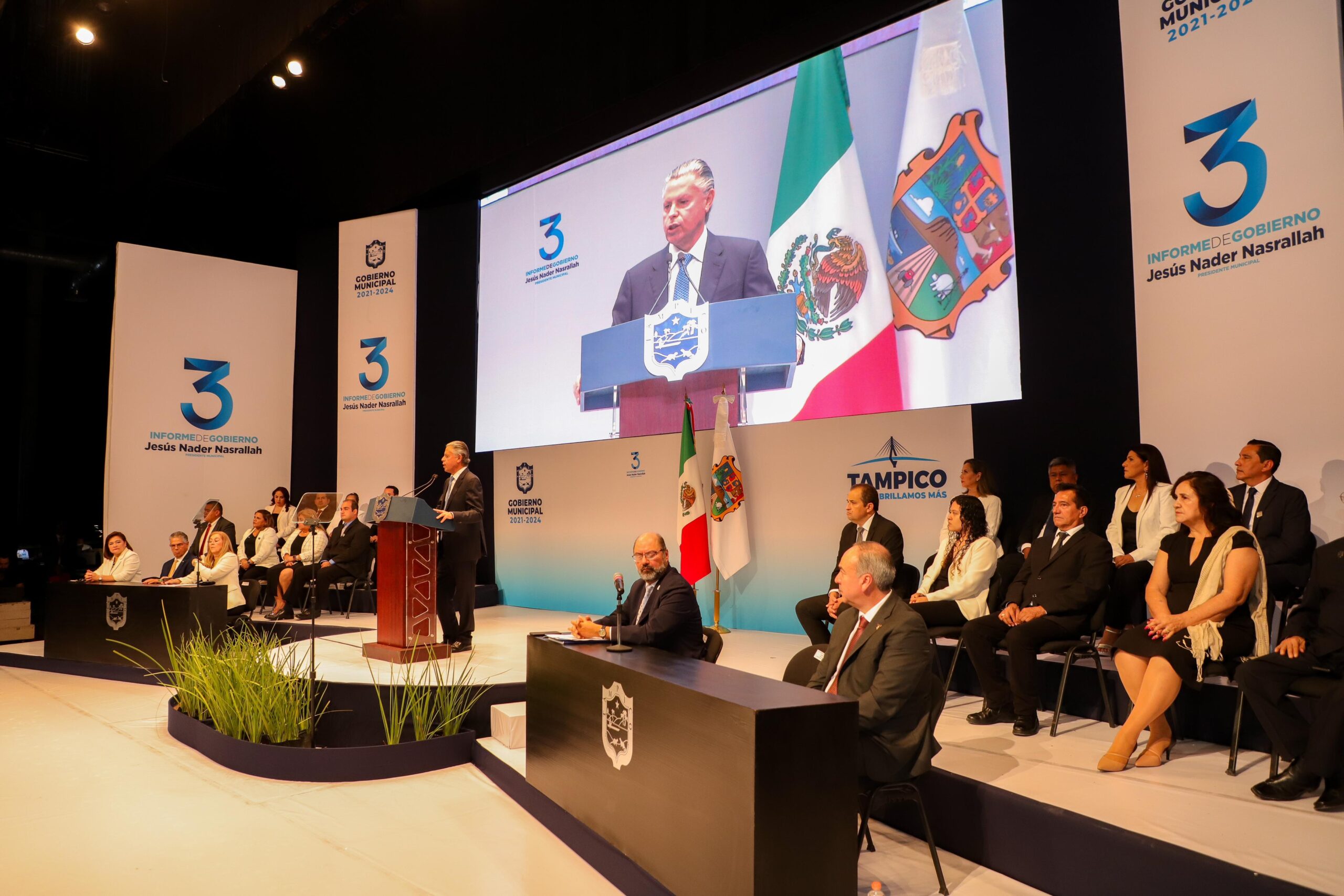 TAMPICO, TAMPS. Al rendir su sexto y último informe de gobierno como Presidente municipal de Tampico, Chucho Nader destacó que la historia de la ciudad de 2018 a la fecha, no se mide con palabras, sino que se cuenta con hechos, obras y acciones que reflejan el avance, desarrollo; y modernidad más importante alcanzado en las últimas décadas.