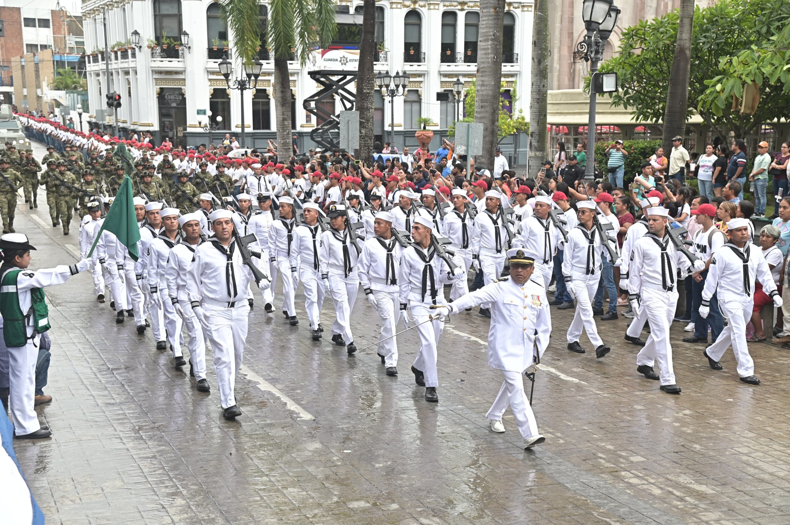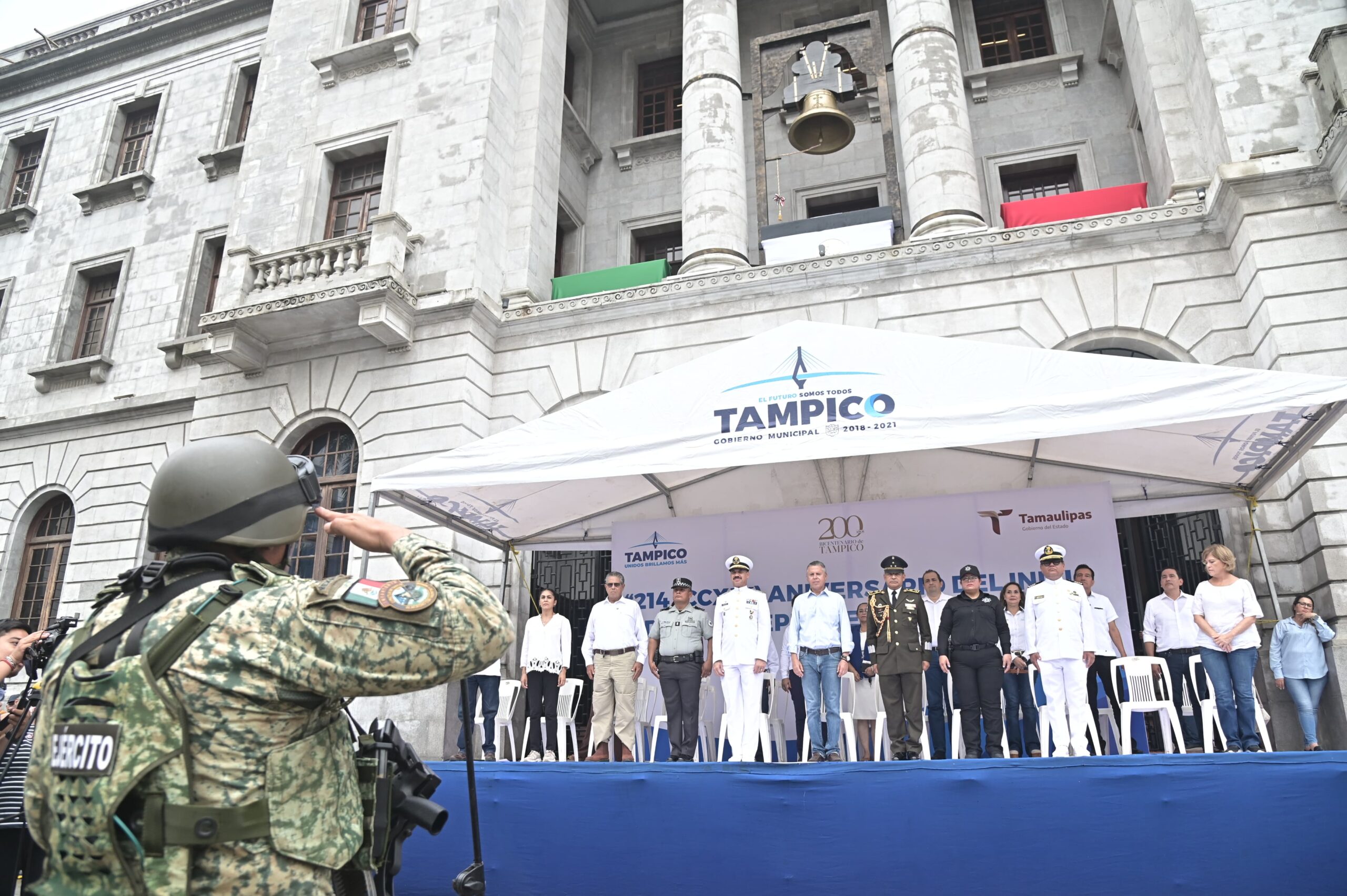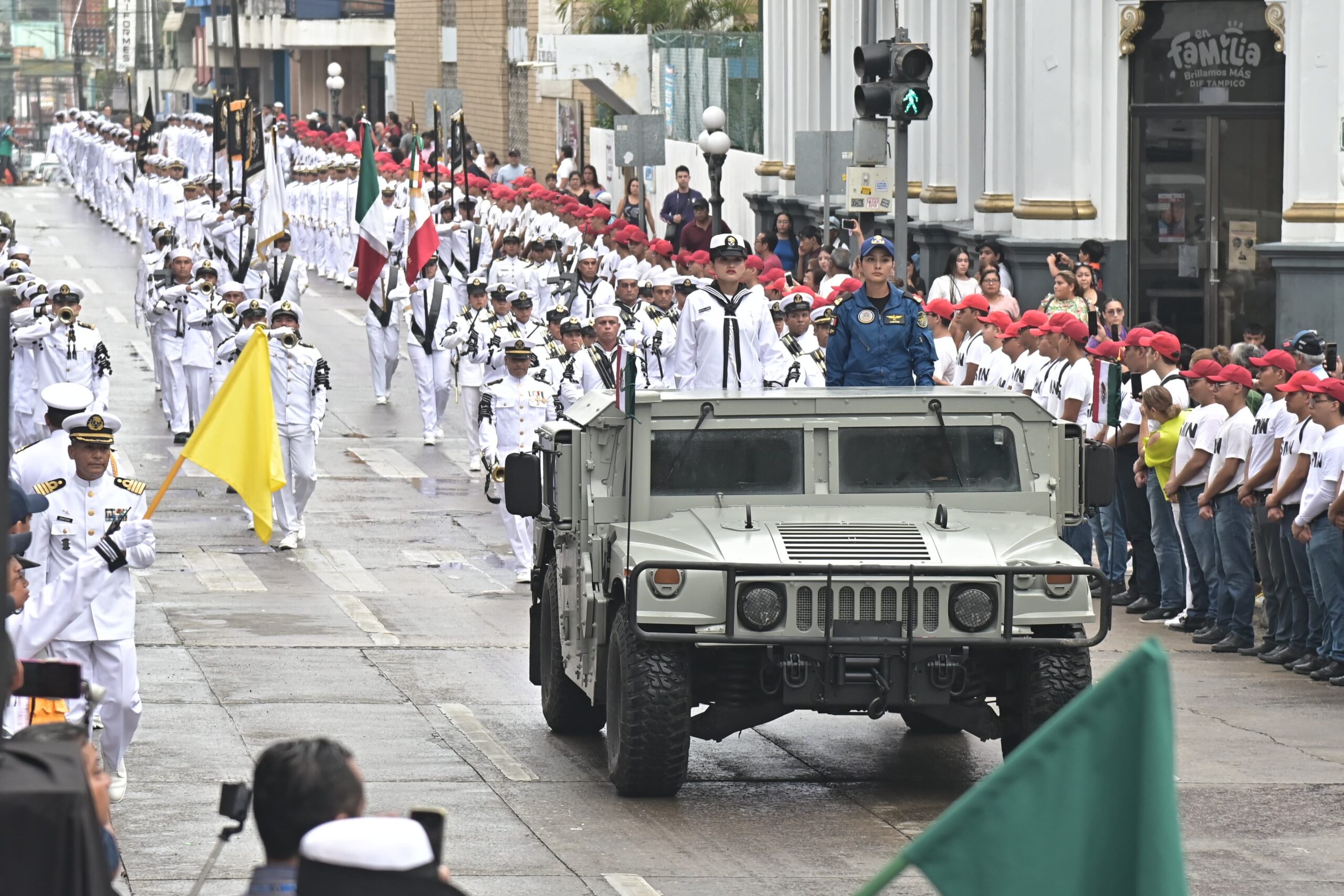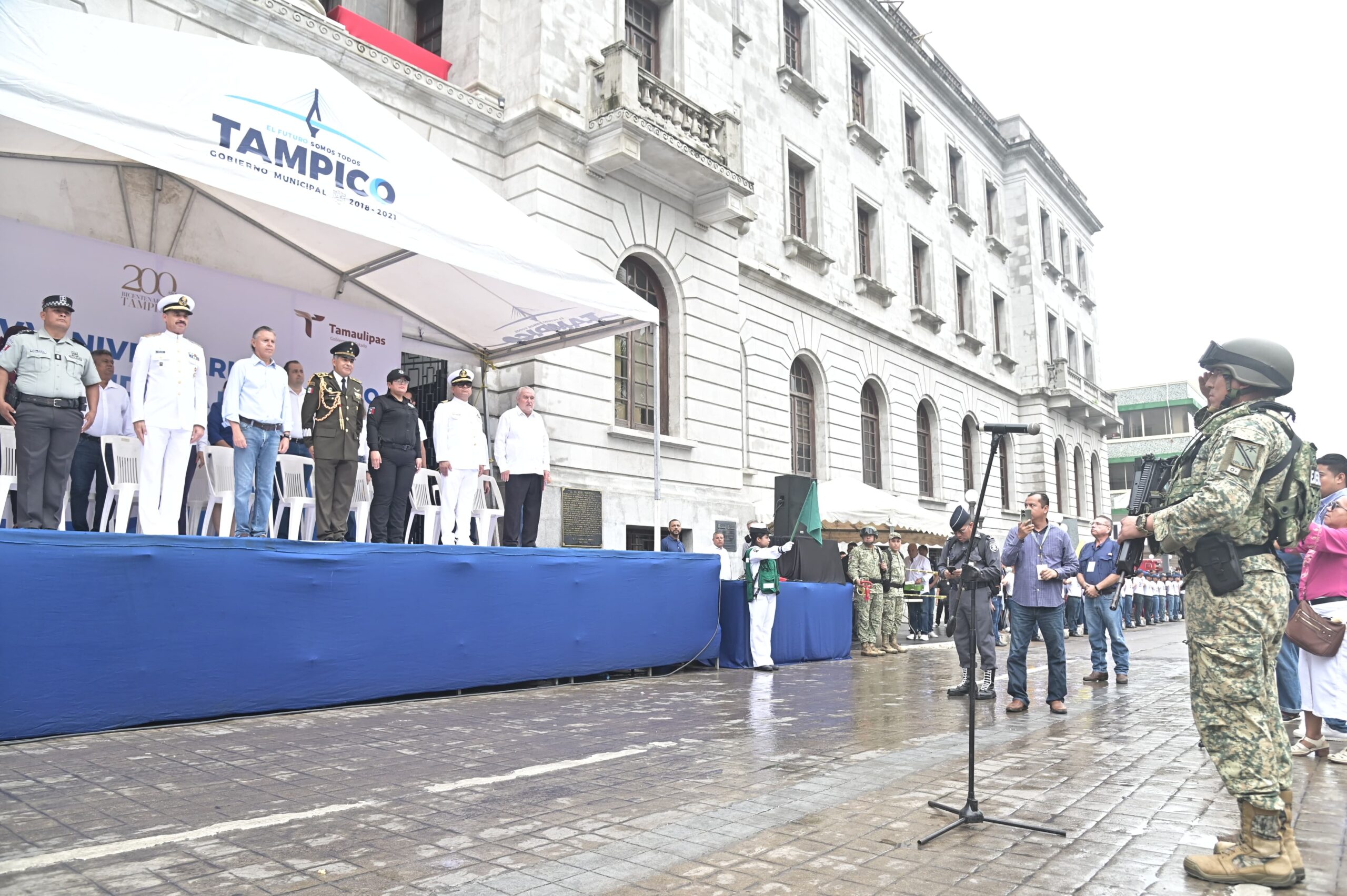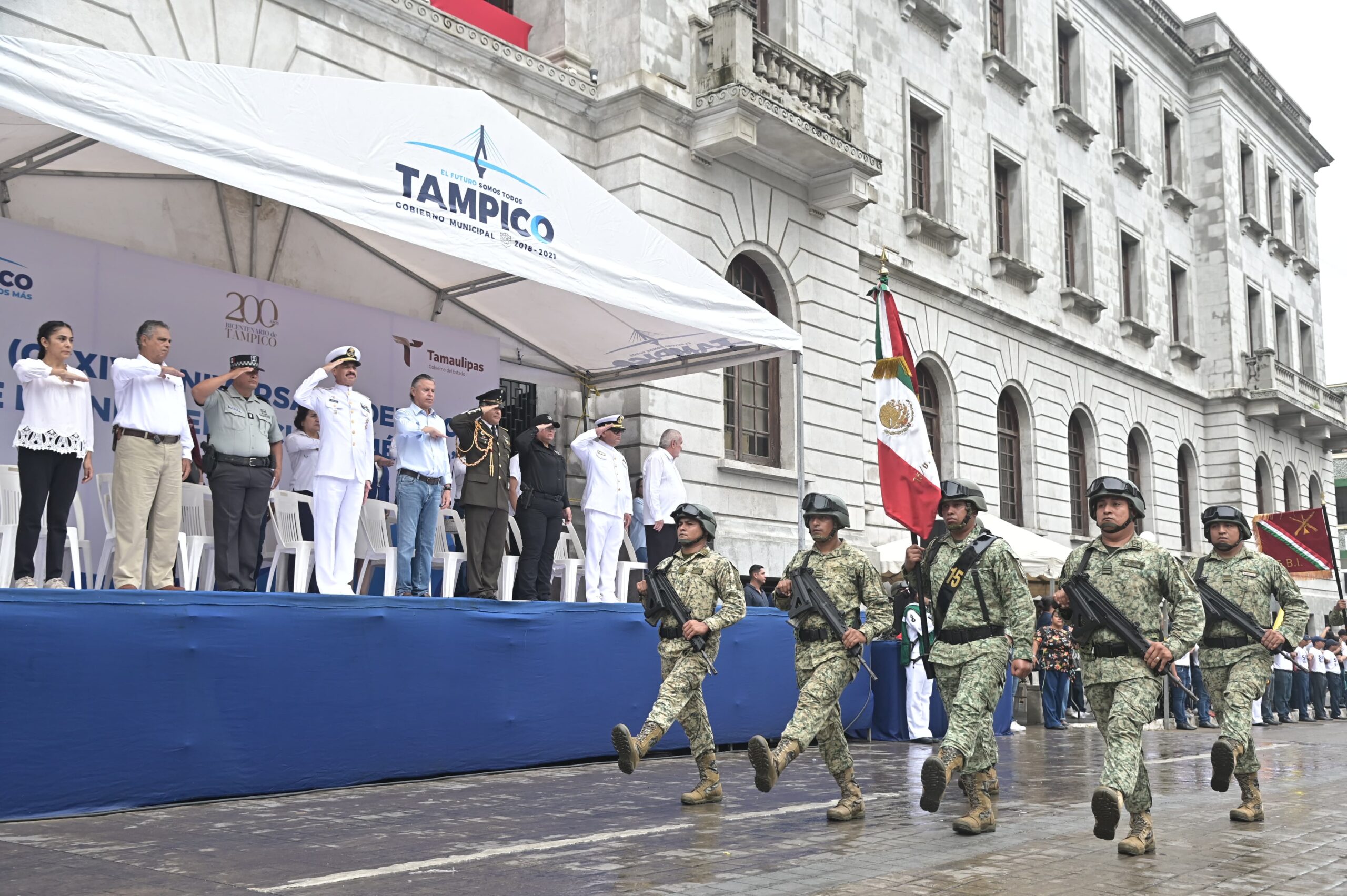 Acompañado por el Comandante del 15avo. Batallón de Infantería, Coronel de Infantería, Jesús Santamaría Mendiola; y por el contralmirante Víctor Manuel Salas Hernández en representación del Vicealmirante Carlos Eduardo L’eglise, Comandante de la Primera Region Naval, el Jefe de la comuna encabezó la parada cívica, misma que fue presenciada por cientos de tampiqueños apostados en toda la longitud de la calle Cristóbal Colón.
