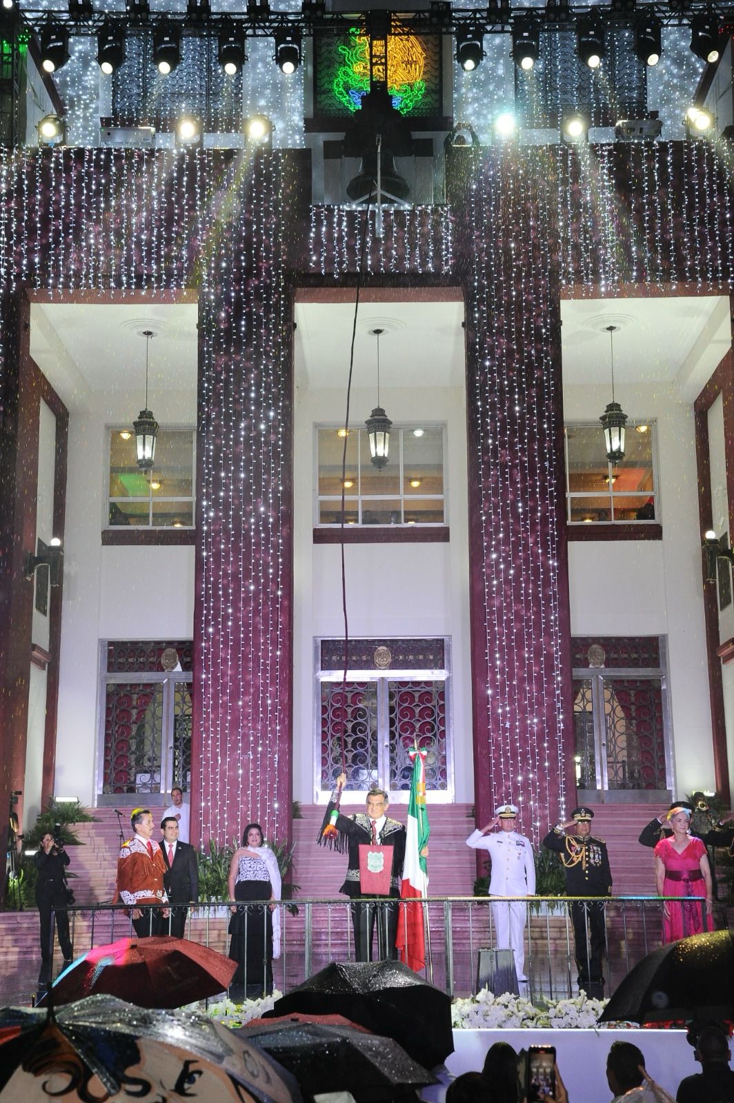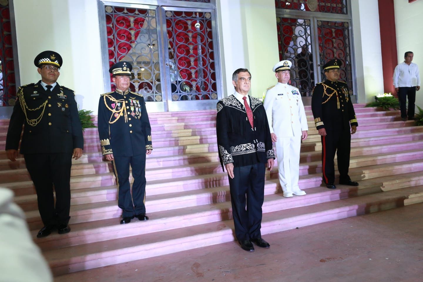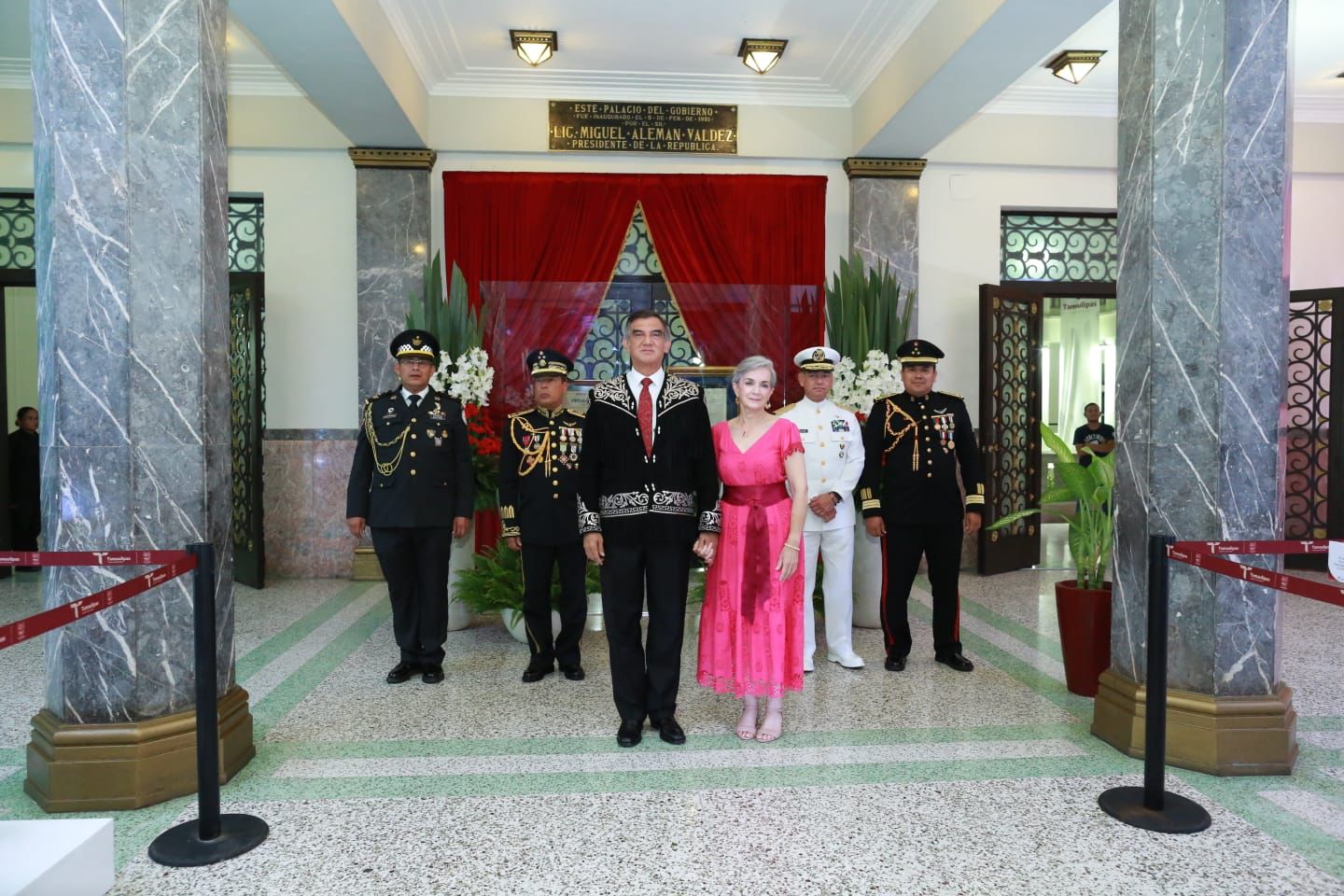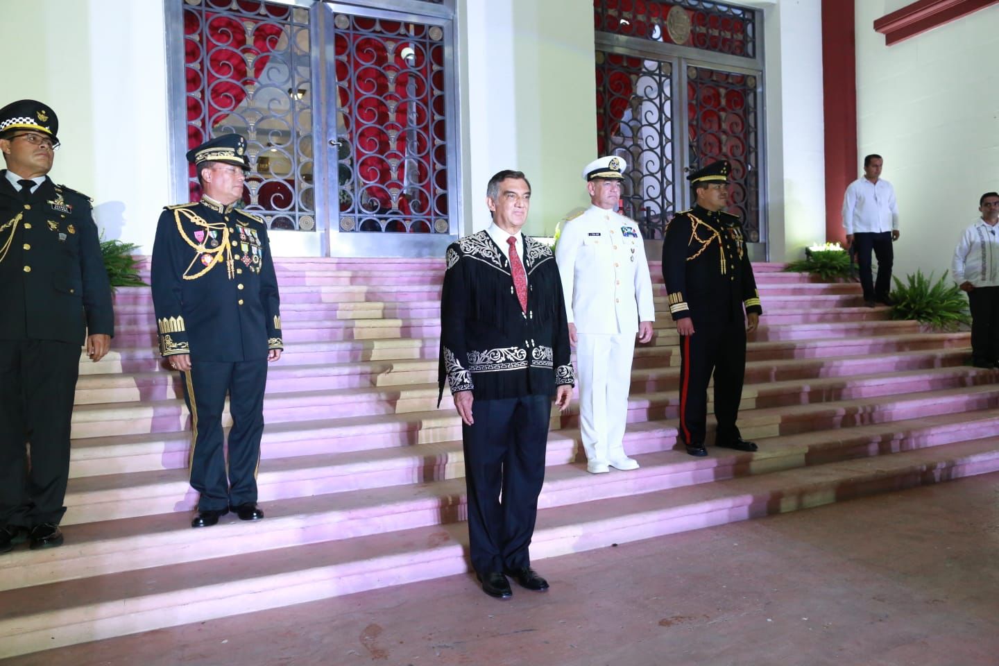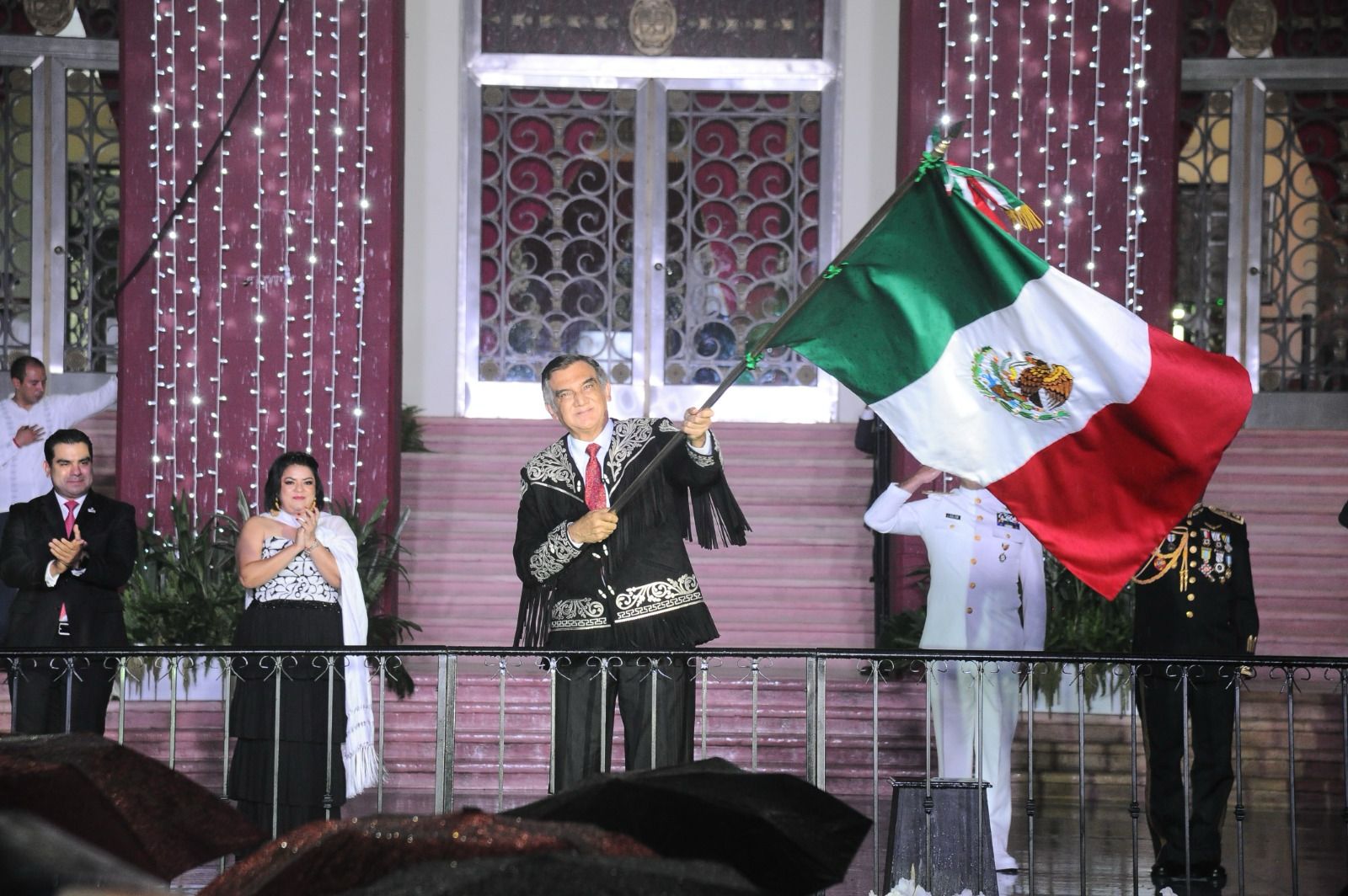En una noche de fiesta, ante una abarrotada Plaza Juárez, el gobernador Américo Villarreal, acompañado por su esposa, la presidenta del DIF Estatal, doctora María de Villarreal, y los titulares de los Poderes Legislativo y Judicial, salió al pórtico principal de Palacio de Gobierno. Tras recibir la Bandera Nacional de manos de la Escolta del 77 Batallón de Infantería, evocó el llamado del Padre de la Patria, Miguel Hidalgo, al pueblo de Dolores aquella madrugada del 16 de septiembre de 1810.