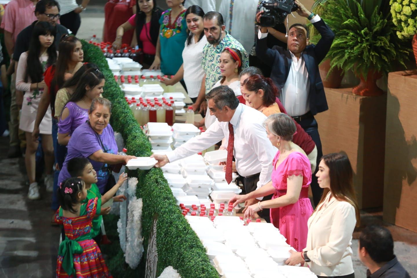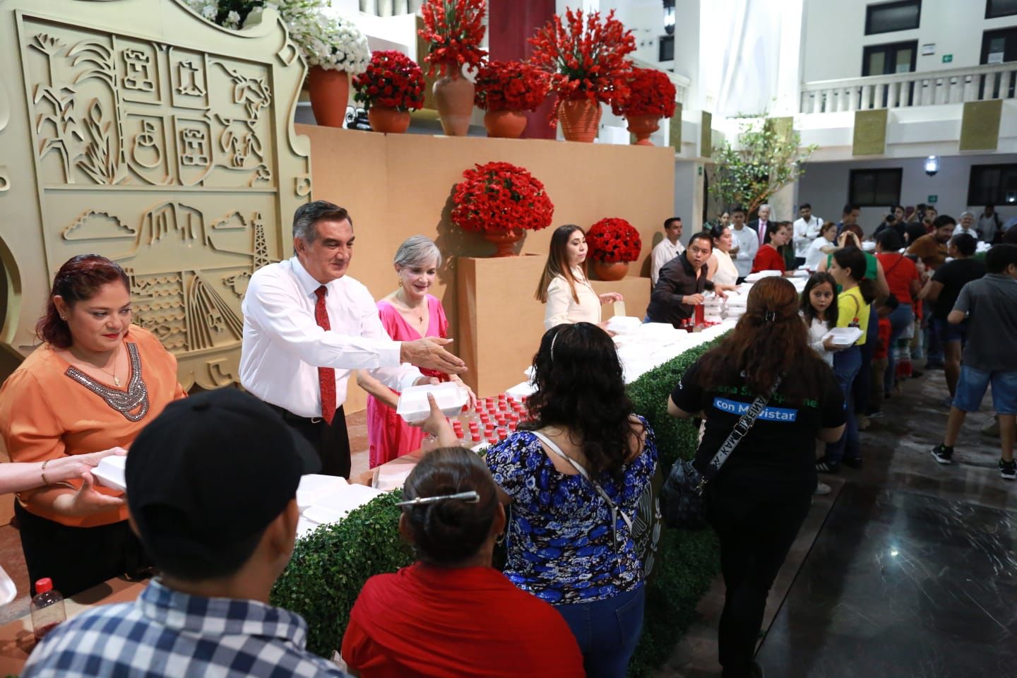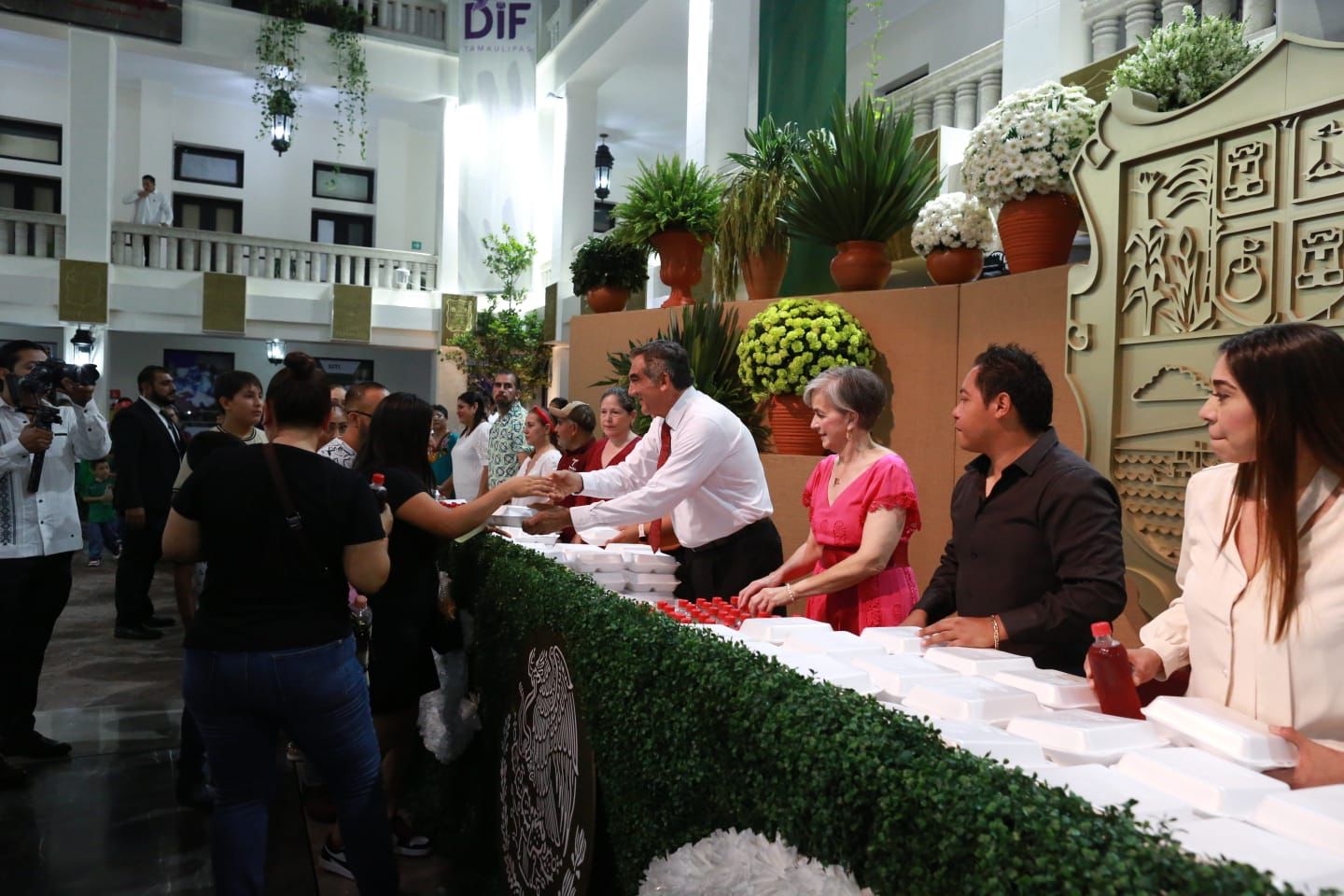 Como parte de la celebración, el gobernador y la presidenta del DIF, abrieron las puertas de Palacio de Gobierno y continuaron con la tradición que inició hace un año, obsequiando platillos tradicionales a todas las familias presentes en la conmemoración.