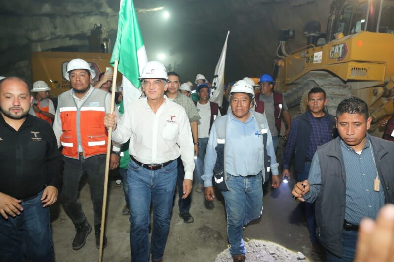 La tarde de este miércoles, el gobernador, acompañado por Alejandro Calzada Pratz, director general del Grupo Hycsa, y Ramón Alonso Casanova Hernández, CFO y CEO de Grupo Hycsa, caminó en el interior del túnel de 1,815 metros de longitud, el cuarto más largo de una autopista en México y único que se construyó en el gobierno de Andrés Manuel López Obrador, el cual lleva el nombre del exgobernador Américo Villarreal Guerra, para presenciar cómo dos máquinas excavadoras derribaron la pared de roca, logrando la interconexión, luego de varios meses de trabajo.