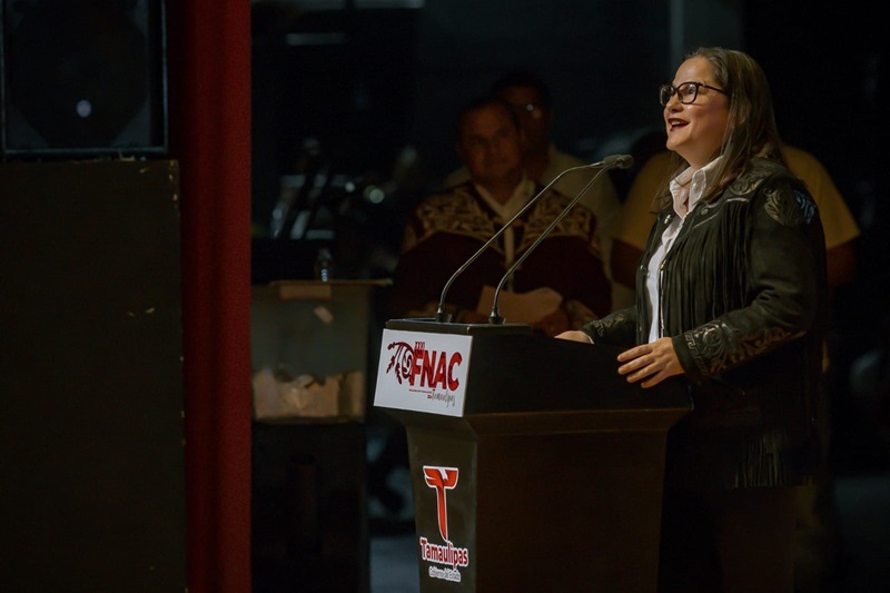 La titular de la Secretaría de Educación de Tamaulipas (SET) resaltó que el FNAC es posible gracias a la visión humanista e integral del mandatario estatal que apoya la cultura y el arte, además del trabajo colaborativo del ITACE, de la Coordinación Nacional de los CECyTEs y de la Universidad Autónoma de Tamaulipas.