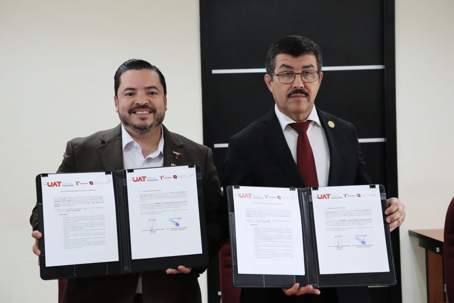 El MVZ Dámaso Anaya Alvarado, rector de la UAT; y el Mtro. José Ramón Silva Arizabalo, secretario de Desarrollo Energético; firmaron el acuerdo de colaboración que formaliza la creación de este nuevo organismo.