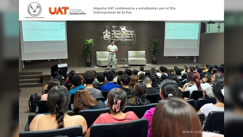 CIUDAD VICTORIA, TAMPS. En el marco del ‘Día Internacional de la Paz’, la Universidad Autónoma de Tamaulipas (UAT) llevó a cabo la conferencia titulada “El impacto de la participación de las juventudes para la paz”, mediante la cual reafirma su compromiso con el desarrollo social y el fortalecimiento de la convivencia pacífica.