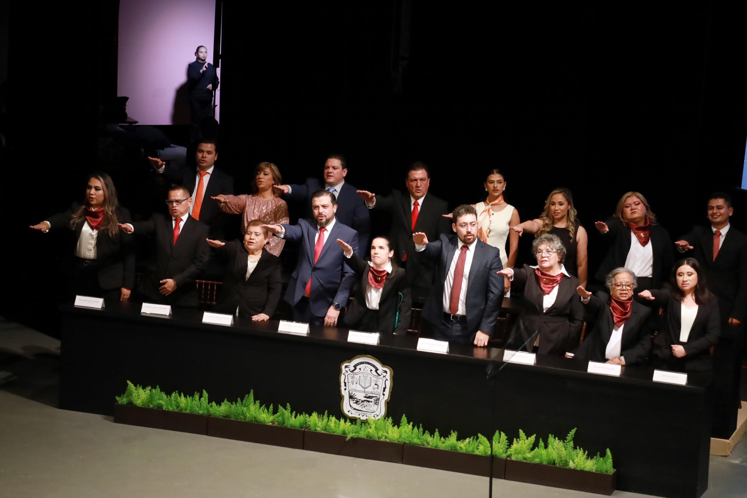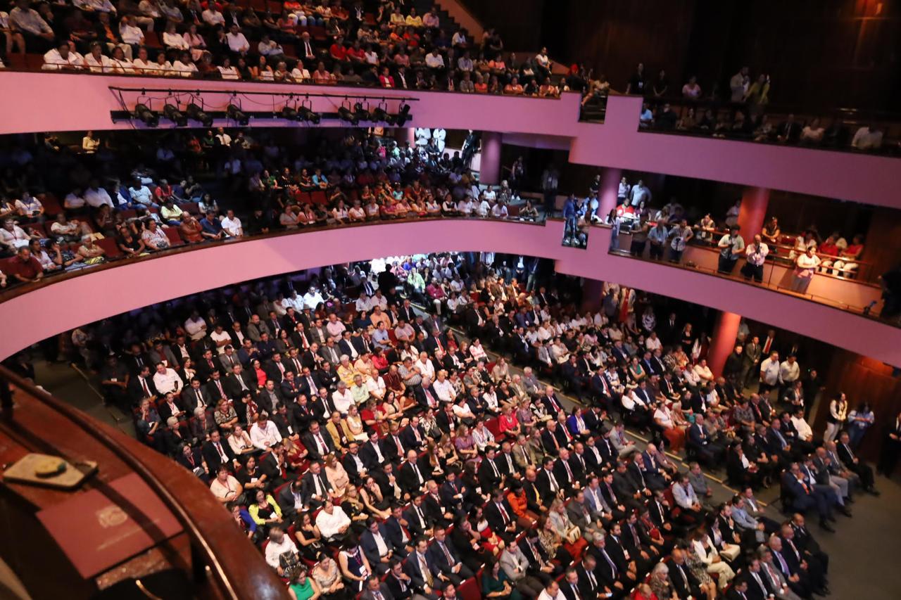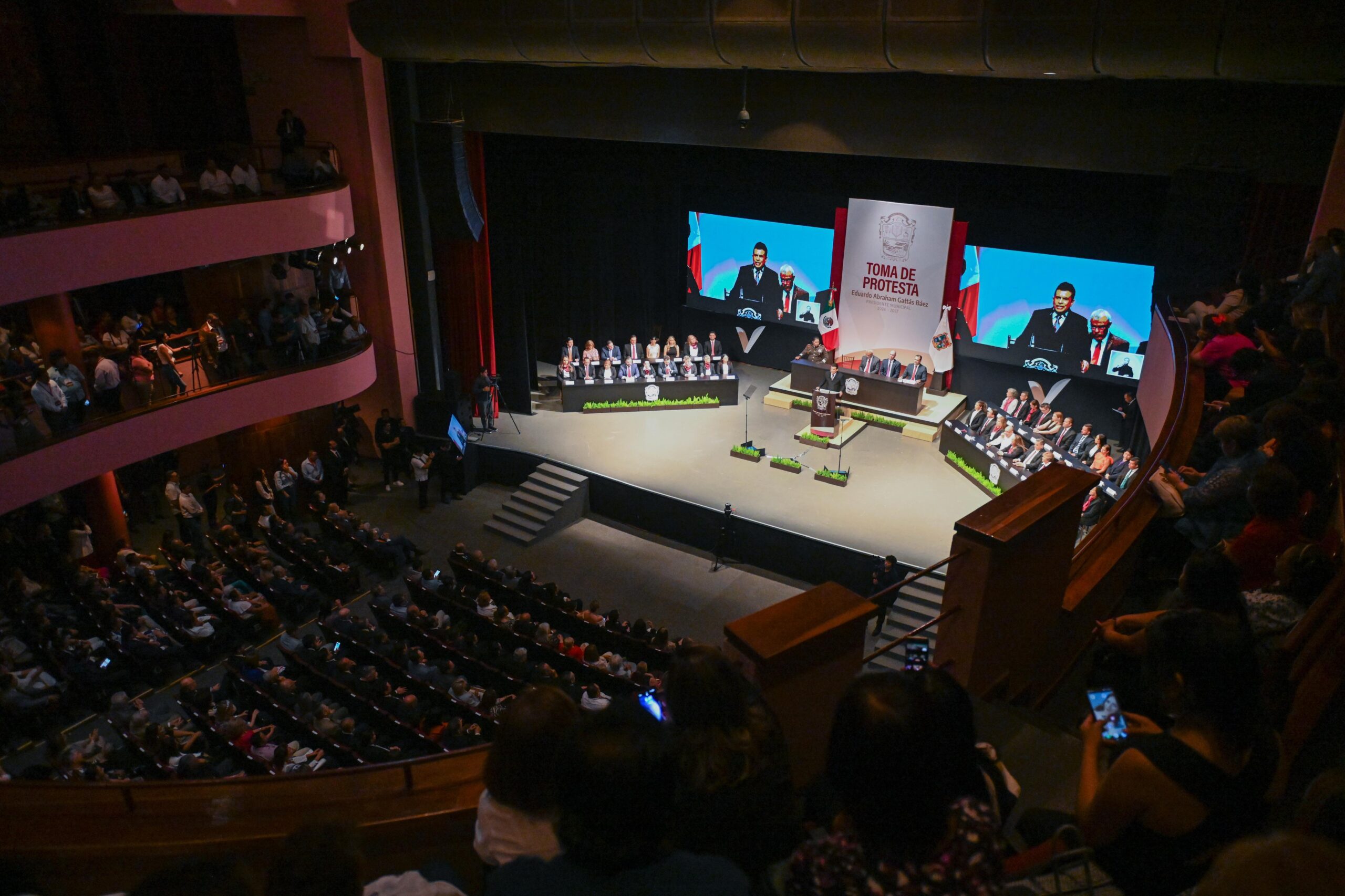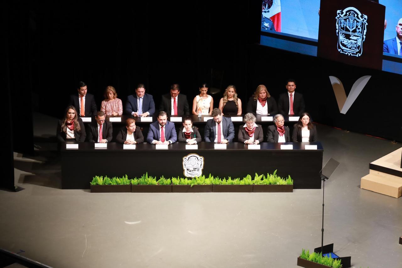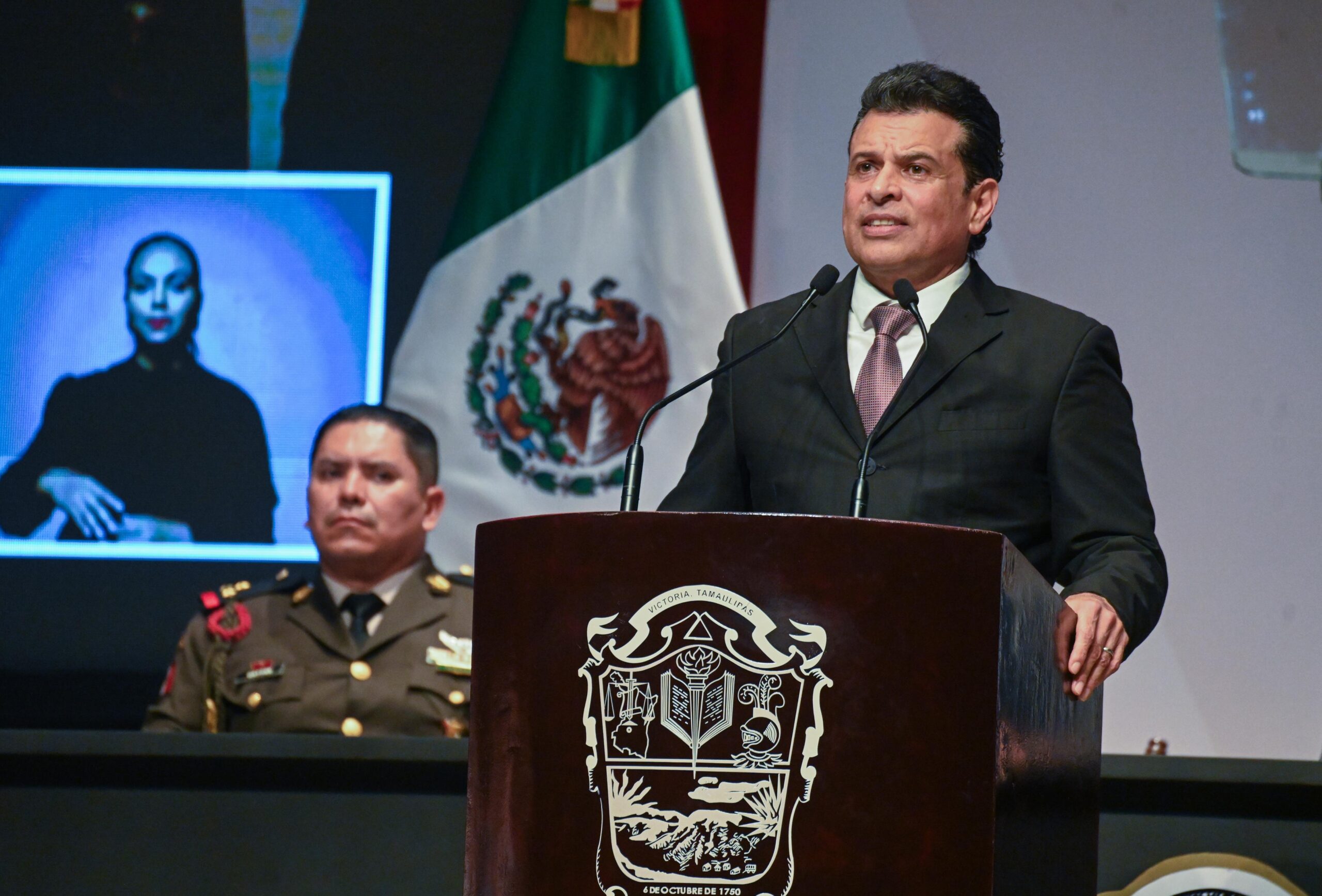 En su discurso ante ciudadanos, integrantes del Cabildo en funciones y electo, autoridades de los poderes Ejecutivo, Legislativo y Judicial y distinguidos invitados reunidos en el Teatro Amalia G. de Castillo Ledón, resumió los tres años de gobierno como el primer piso de la transformación cimentado en base al esfuerzo, compromiso y trabajo por el bienestar de las familias victorenses.