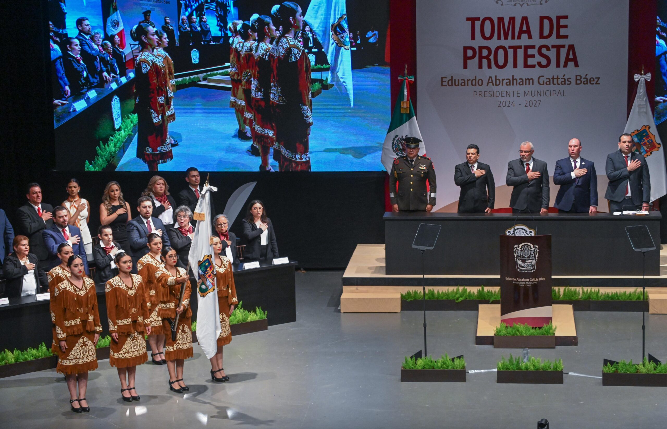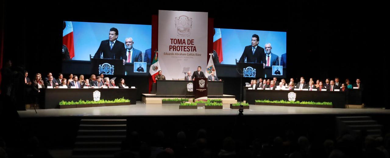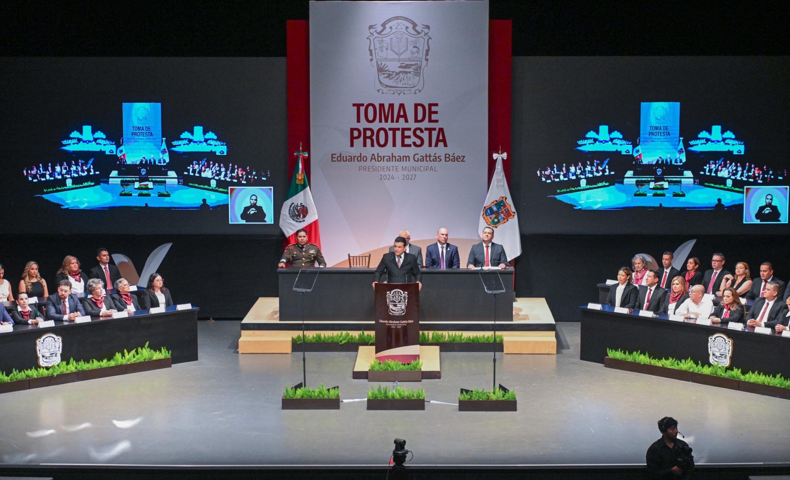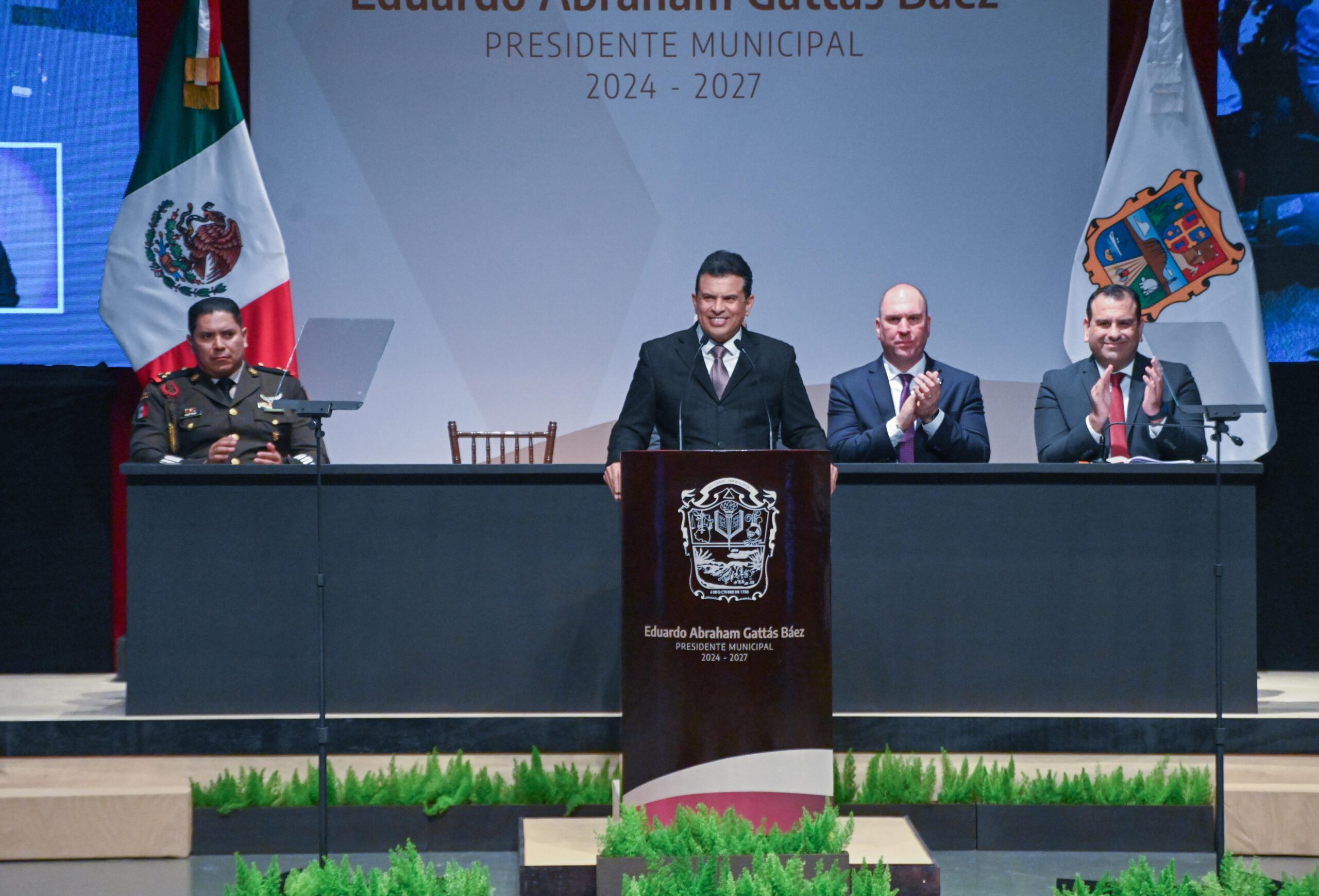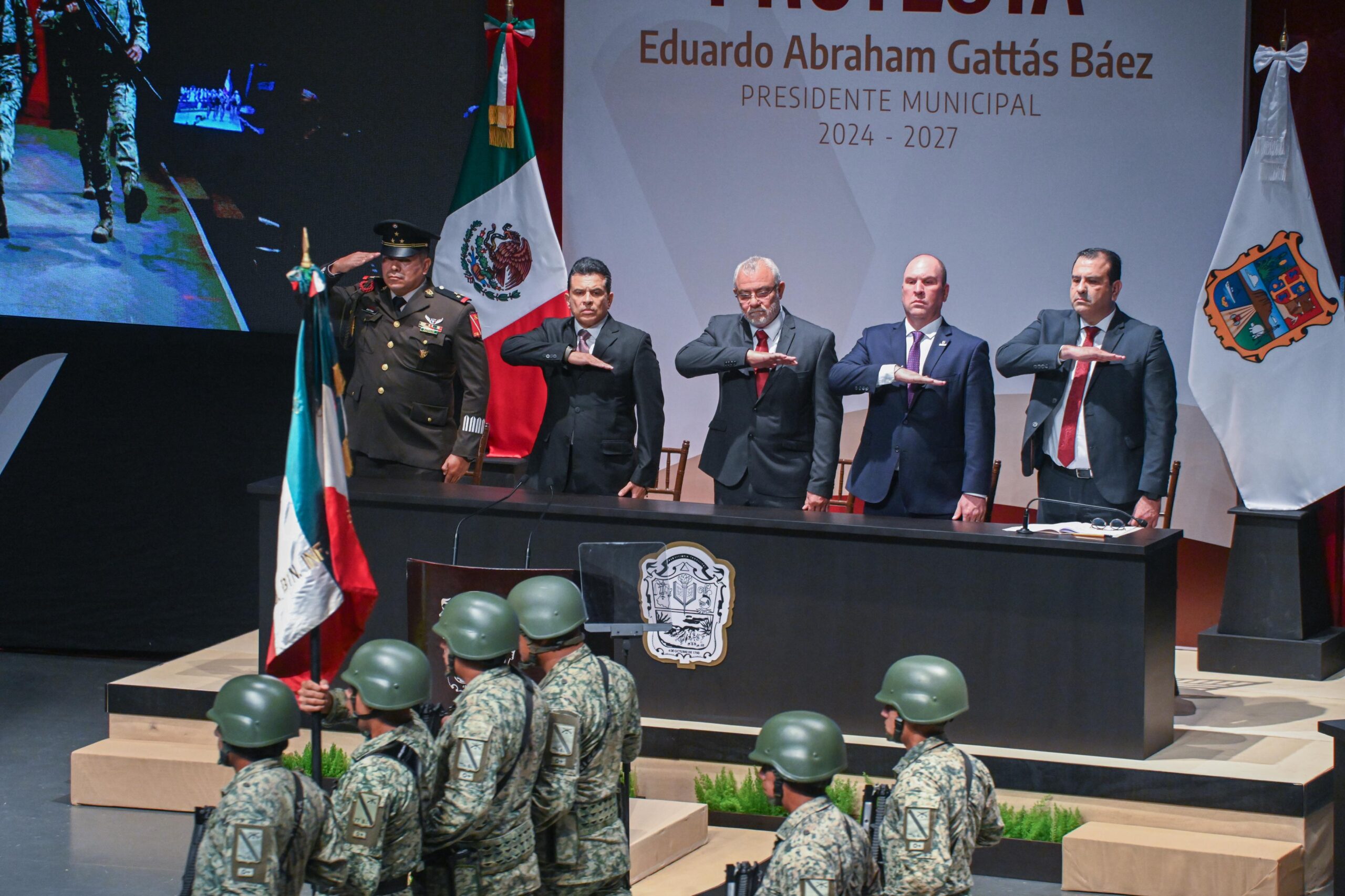 CIUDAD VICTORIA, TAMPS. En sesión solemne de Cabildo, Eduardo Abraham Gattás Báez tomó protesta constitucional como presidente municipal de Victoria para el segundo período 2024-2027, donde refrendó su compromiso y voluntad de seguir trabajando unidos sociedad y gobierno en la transformación del segundo piso de la Capital del Estado.
