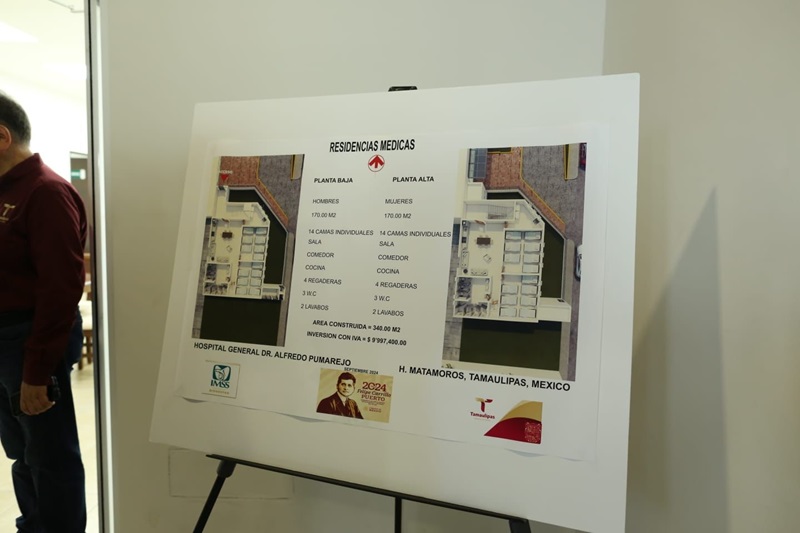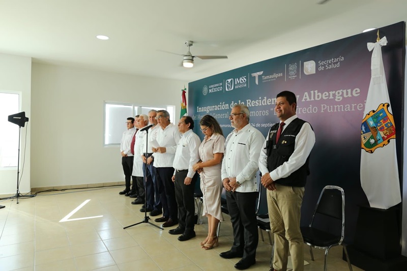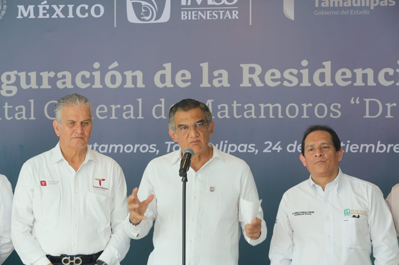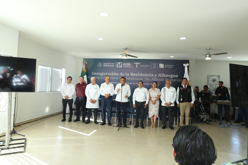 Al referirse al mejoramiento de la infraestructura hospitalaria, puso como ejemplo la conclusión del Hospital General IMSS-Bienestar de Matamoros «Dr. Alfredo Pumarejo», con un costo de mil 64 millones de pesos, que ahora cuenta también con un albergue y espacio para residentes, que contribuirá a la formación de personal médico.