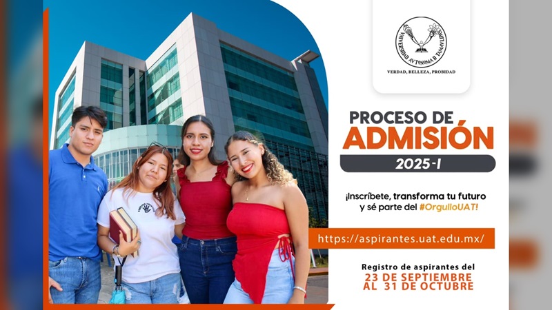 Durante ese lapso, las personas interesadas podrán registrarse a través de la página https://aspirantes.uat.edu.mx o bien accediendo desde el portal oficial www.uat.edu.mx al apartado “aspirantes”, para asegurar su participación en el proceso de admisión.