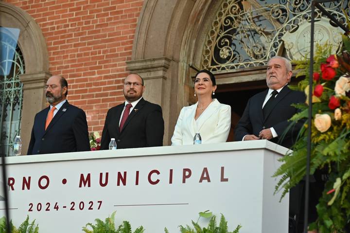 Ataviada en un traje sastre blanco, la ya alcaldesa, Villarreal Anaya, enumeró los cinco ejes de su gobierno que serán: Bienestar Social, Prosperidad compartida, Movilidad y Servicios Públicos de calidad, Seguridad y Proximidad Social.