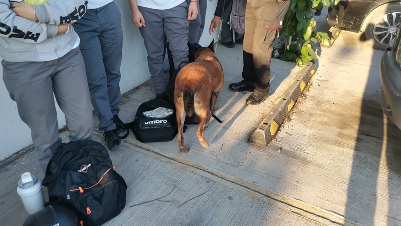 Igualmente, durante la revisión, el binomio canino detectó una sustancia prohibida en el casco de otro estudiante.