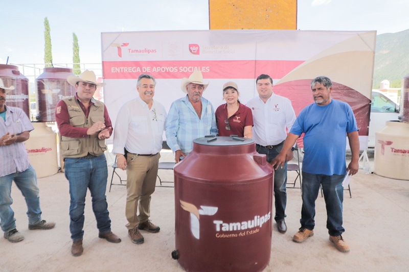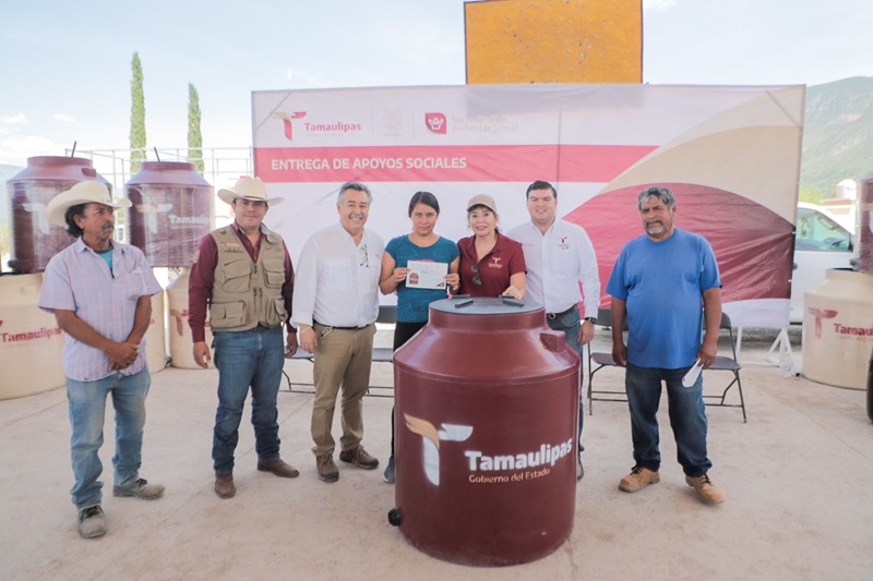 TULA, TAMPS. Cumpliendo con la palabra dada por el gobernador Américo Villarreal Anaya a los habitantes del ejido Francisco Villa del municipio de Tula, la secretaria de Bienestar Social (SEBIEN), Silvia Casas González realizó la entrega de tinacos a los residentes de esta zona del estado.