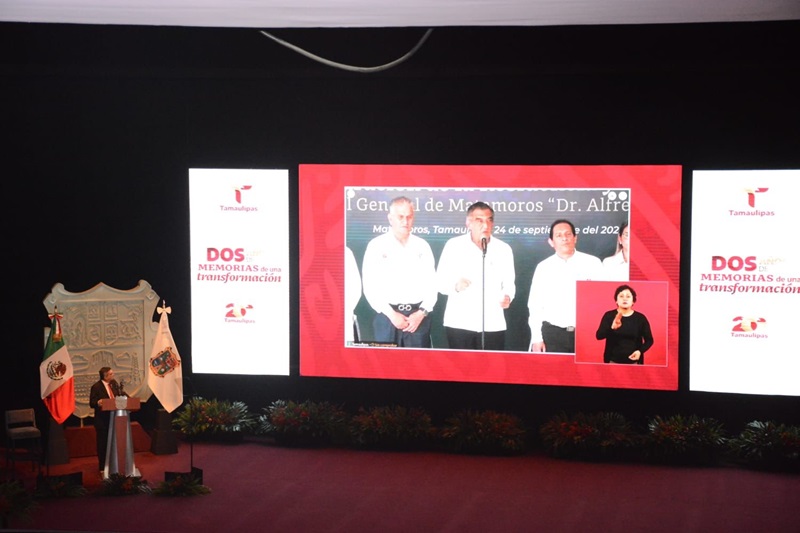 En cuanto a obras, informó sobre la construcción del nuevo Hospital General de Matamoros, el equipamiento del Hospital Civil de Ciudad Madero y la modernización del Centro Oncológico de Tamaulipas.