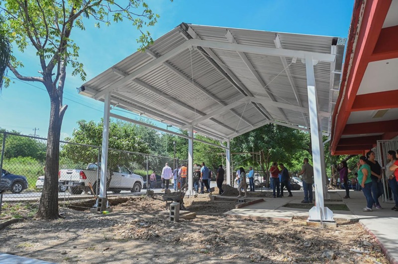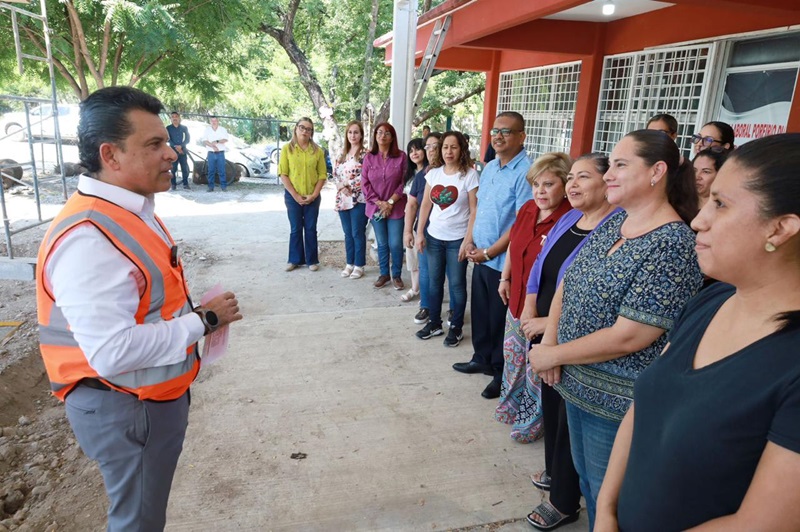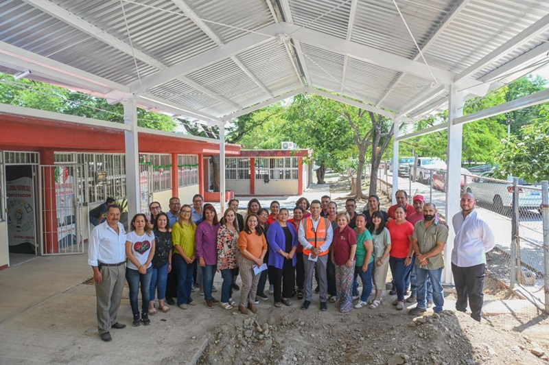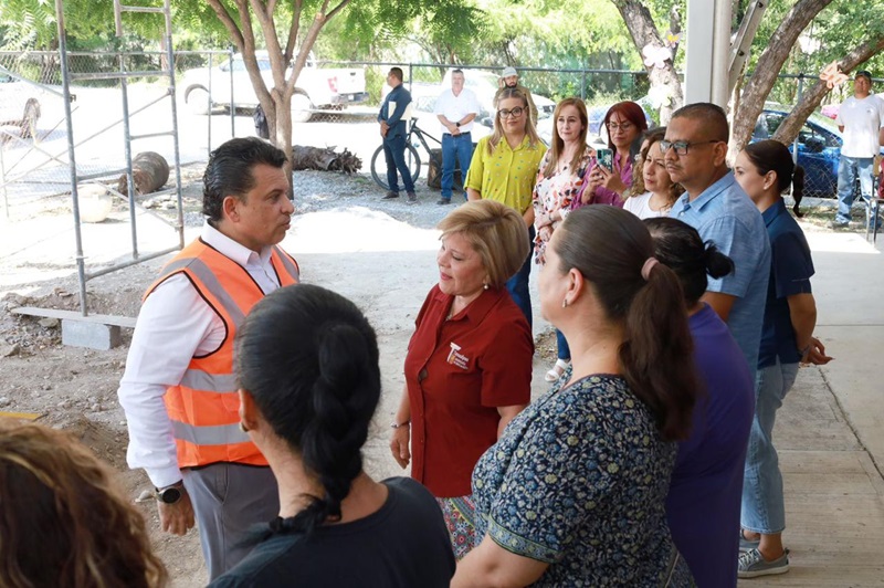 En su visita al Centro de Atención Múltiple -CAM- “Porfirio Díaz” de la colonia Mainero, entregó a directivos y padres de familia una barda perimetral de 45 metros lineales y constató el avance de la construcción de una techumbre de 72 M2 que beneficiará en sus actividades educativas y formativas a 191 alumnos.