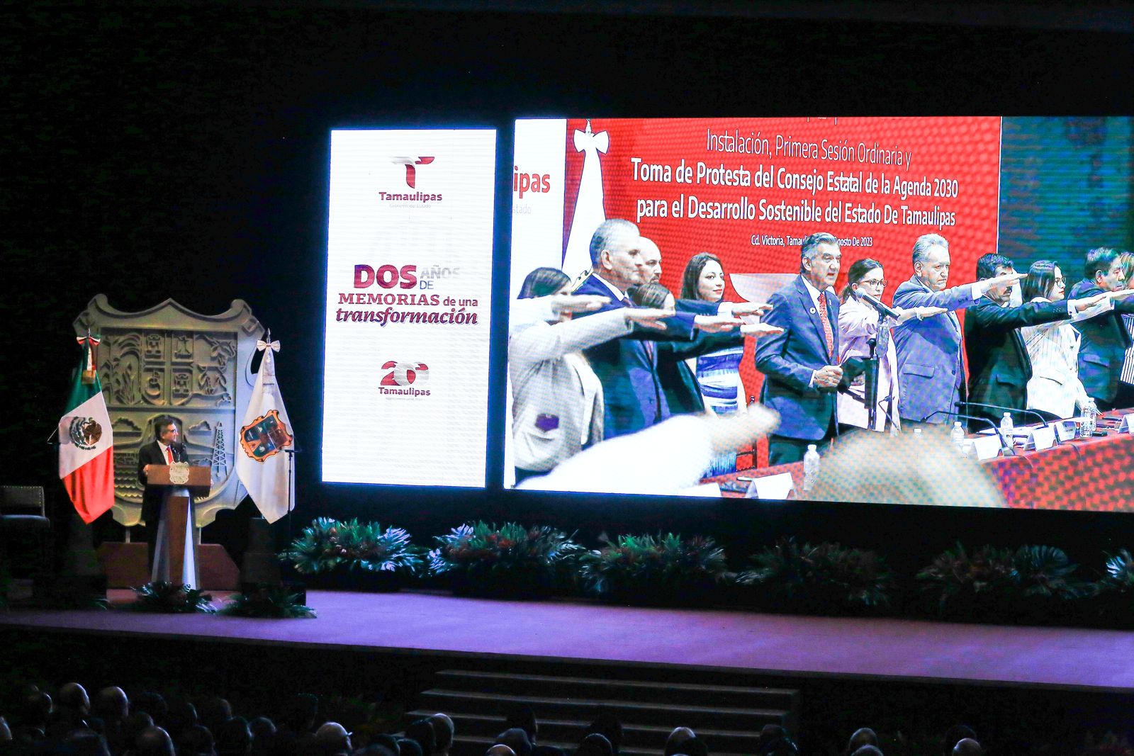 Ante los titulares de los poderes Legislativo y Judicial, legisladores, presidentes y presidentas municipales, mandos de las Fuerzas Armadas y representantes de organismos empresariales y de la sociedad civil, Villarreal Anaya hizo un recuento de 24 meses de gobierno humanista.