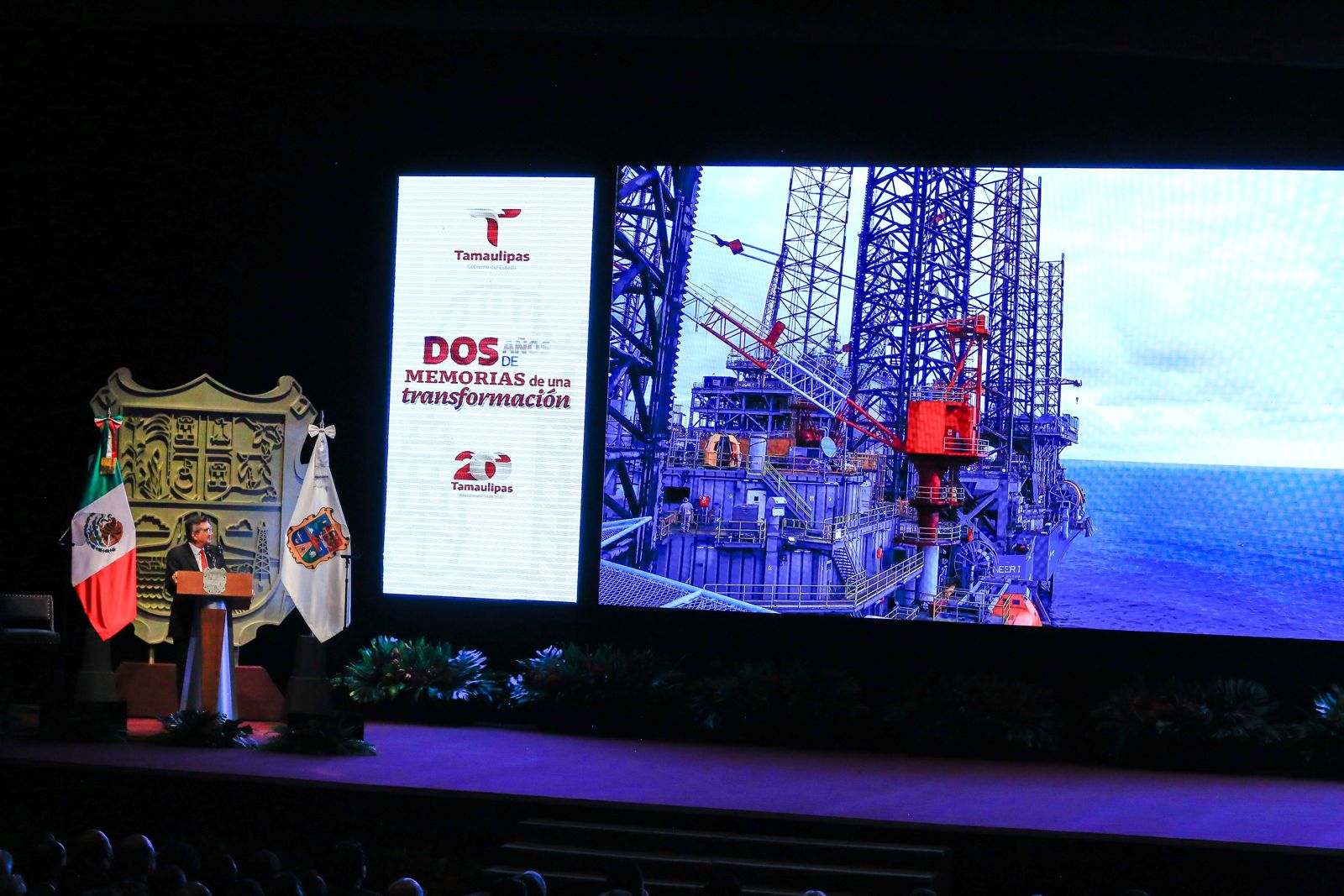 Indicó que en dos años se ha dado nuevo empuje a la enorme fortaleza energética del estado y gracias a ese potencial y por la magnitud e innovación de los proyectos en marcha, Tamaulipas es referente energético nacional.