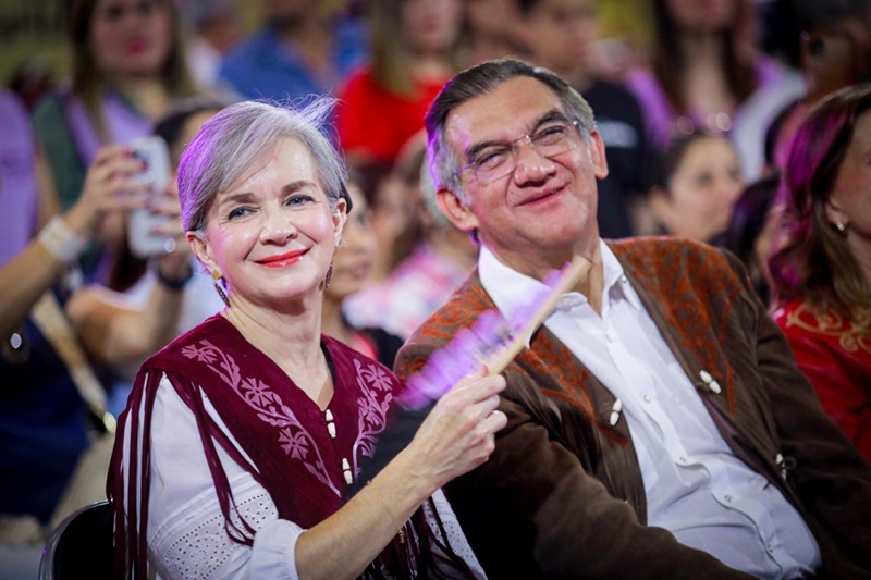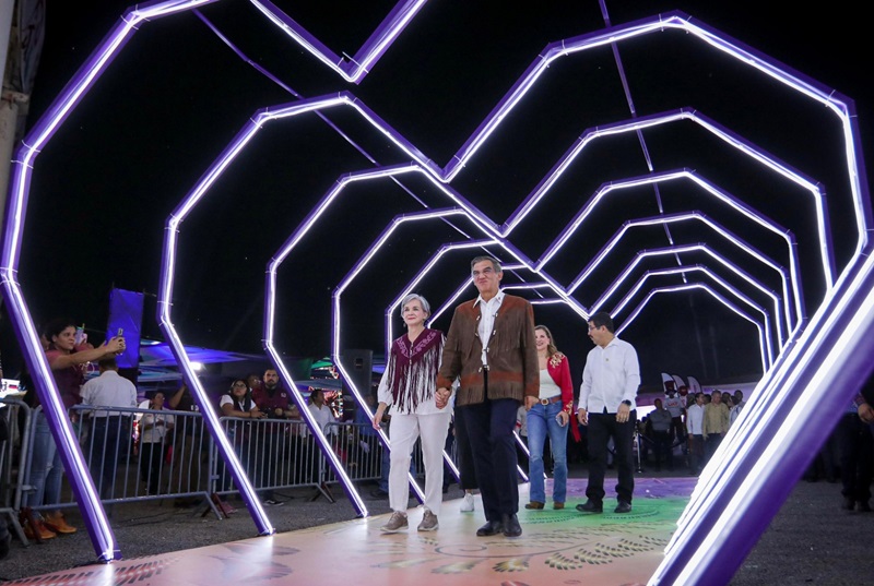 CIUDAD VICTORIA, TAMPS. Al ponerse en marcha las actividades de la Feria Tamaulipas 2024, el doctor Américo Villarreal Anaya, gobernador del estado y su esposa la doctora María de Villarreal presidenta del DIF Tamaulipas, cortaron el listón que inauguró de manera simbólica las actividades del stand de los Mensajeros de Paz que cuenta con actividades lúdicas, culturales y recreativas para toda la familia.