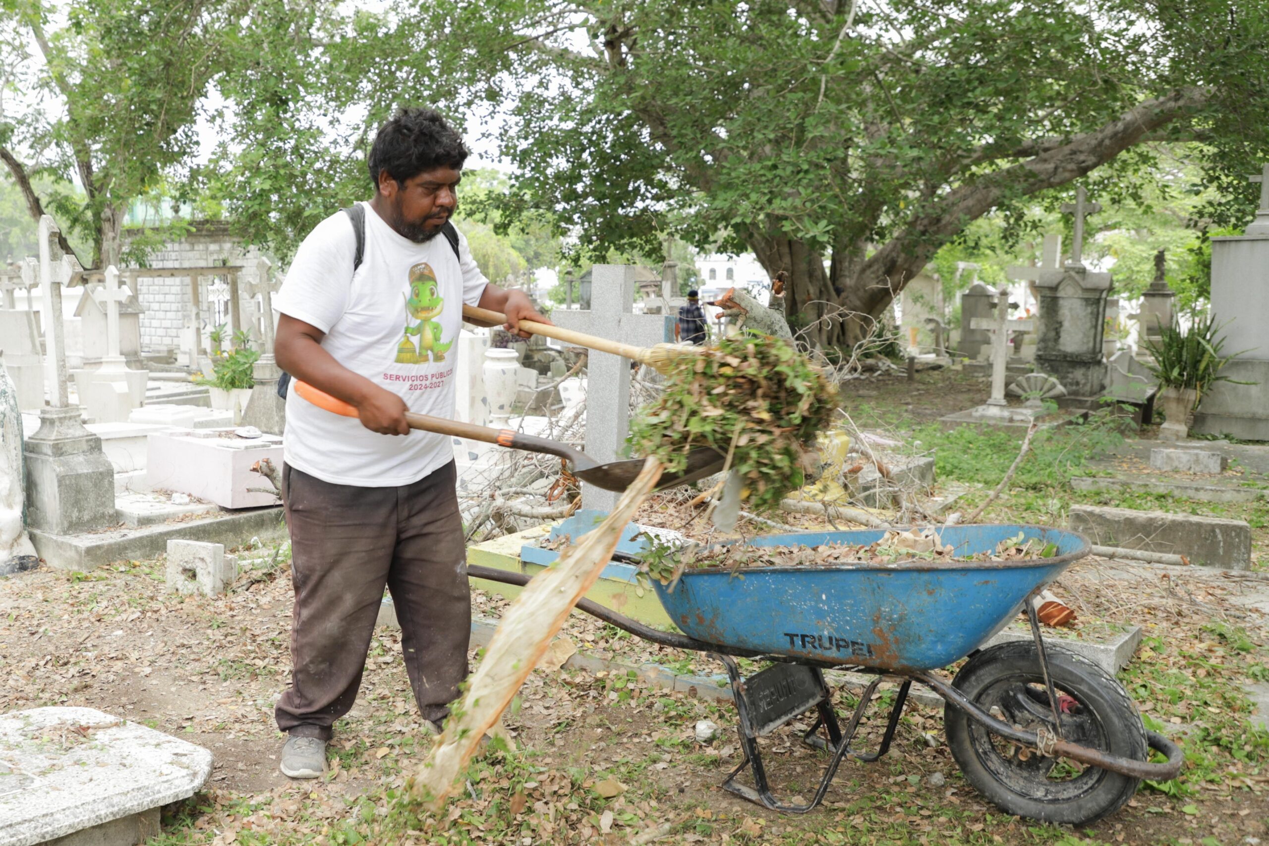 Asimismo, comentó que de manera paralela se desarrollan tareas de limpieza en los panteones de las colonias Borreguera y Tancol.