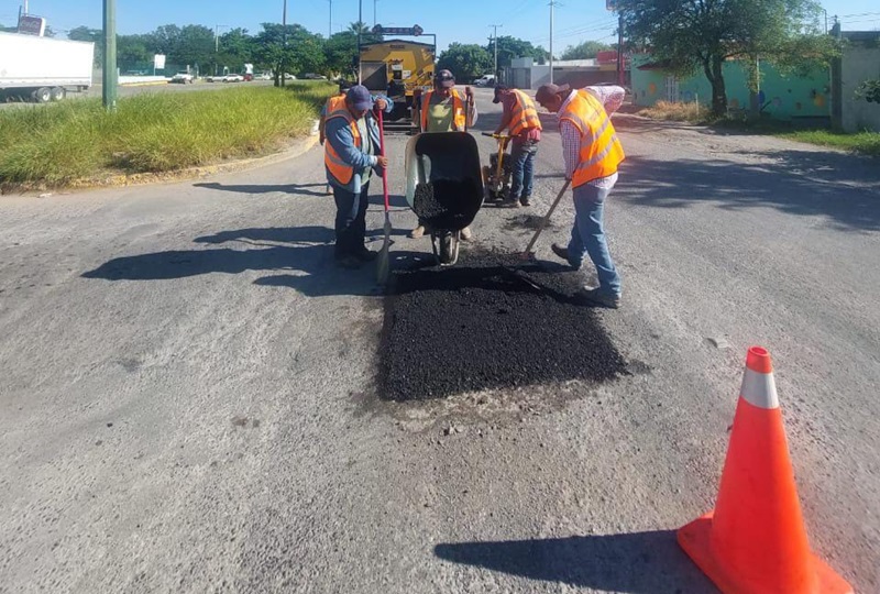 Con trabajos de bacheo, se atendió esta problemática en calles Matamoros y Lauro Rendón de la colonia Héroe de Nacozari, avenida Pajaritos y Águila Azteca de la colonia Barrio de Pajaritos, Carlos A. Avilés de la colonia Azteca y tramo del bulevar Portes Gil de la colonia Framboyanes.