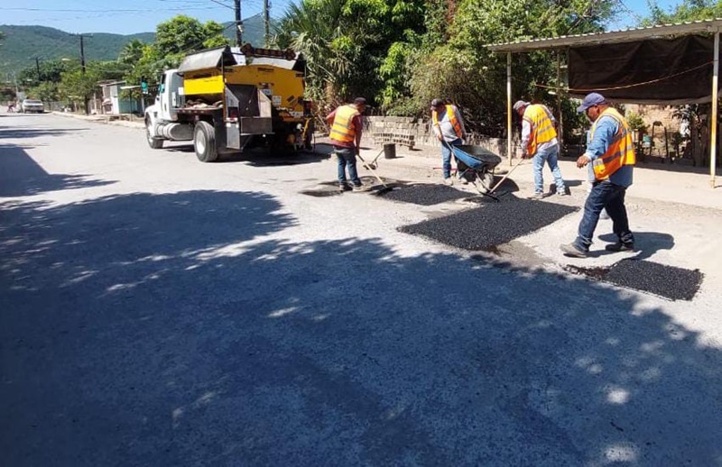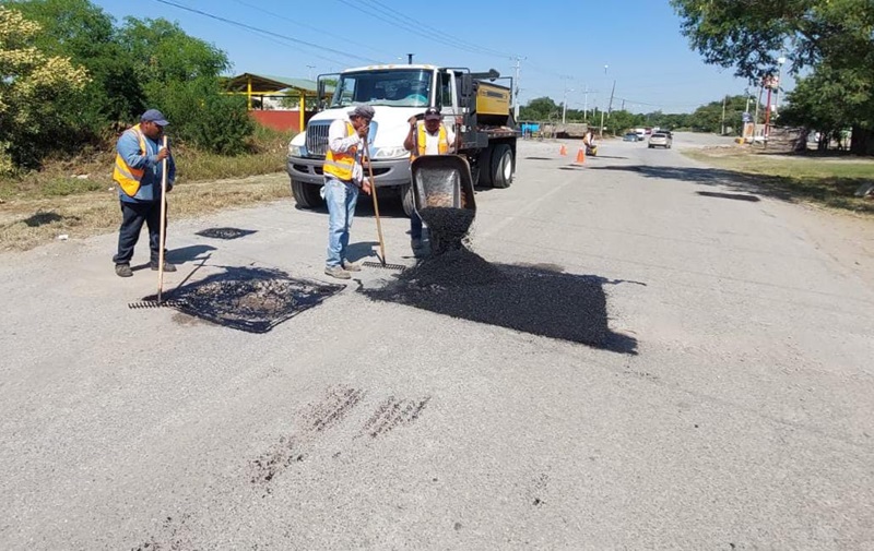 Otra cuadrilla del Departamento de Rehabilitación de Pavimentos acudió hasta el ejido La Libertad para recubrir hoyos en tramos de la carretera Interejidal y acceso al parque ecológico Los Troncones para mayor seguridad de paseantes y habitantes de comunidades aledañas.
