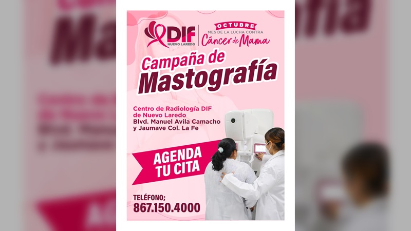 NUEVO LAREDO, TAMPS. En el marco del Mes de la Concientización sobre el Cáncer de Mama, el Sistema DIF Nuevo Laredo realiza la ‘Campaña de Mastografías Gratuitas’ para personas en situación vulnerable.