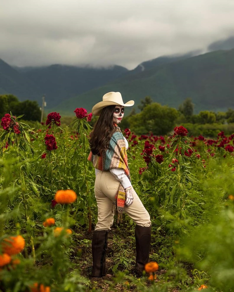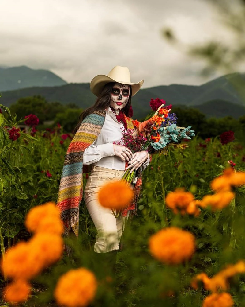 CIUDAD VICTORIA, TAMPS. La diputada local Katalyna Méndez Cepeda destacó la cosecha de flores de cempasúchil en municipios como Victoria, Tula y Altamira, entre otros, y para promocionar esta tradición realizó una sesión de fotos vestida de «Catrina Norteña».