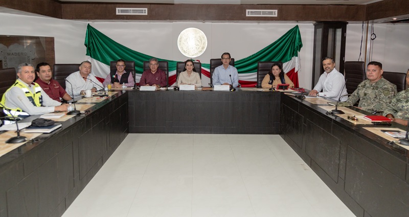 En la mesa de seguridad, efectuada en el Ayuntamiento de Ciudad Madero, la alcaldesa porteña estuvo acompañada de los alcaldes de Altamira, Armando Martínez Manríquez y del municipio anfitrión, Erasmo González Robledo; así como representantes de la sociedad civil y de las fuerzas armadas.
