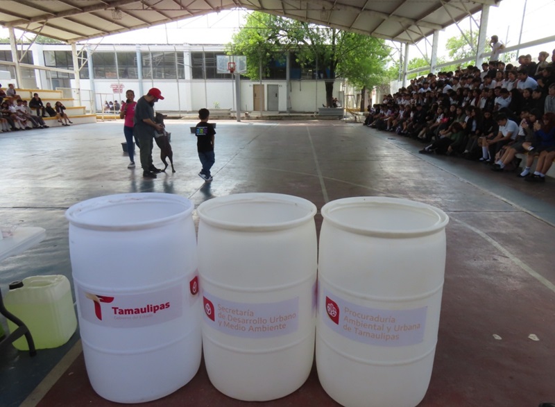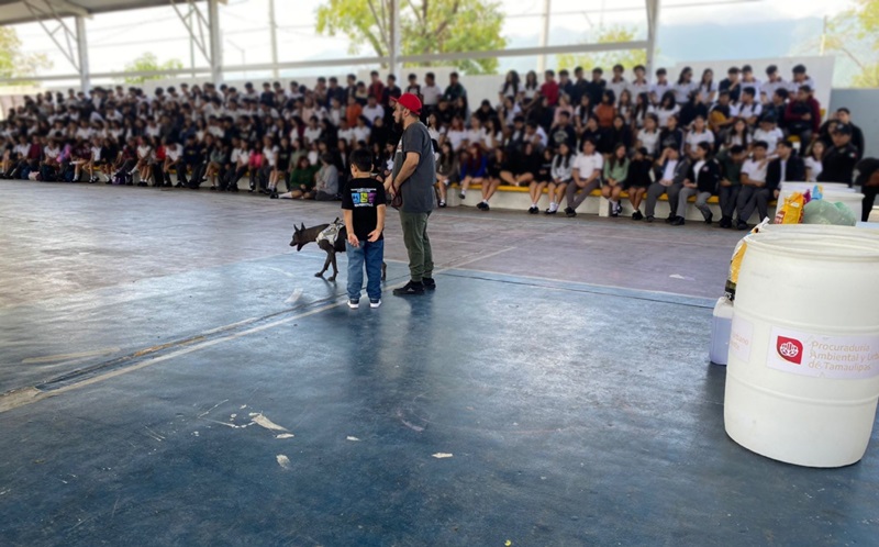 CIUDAD VICTORIA, TAMPS. La Secretaría de Desarrollo Urbano y Medio Ambiente (SEDUMA), en colaboración con la Procuraduría Ambiental y Urbana de Tamaulipas (PAUT), la Secretaría de Seguridad Pública mediante el agrupamiento canino K-9, y la Asociación Civil KNProyect, participó en la charla de concientización sobre protección ambiental y sustentabilidad para los estudiantes del CBTis 24 en Ciudad Victoria.