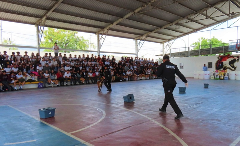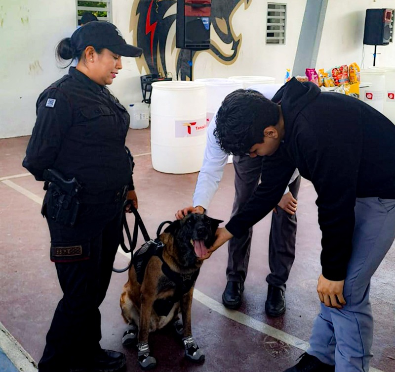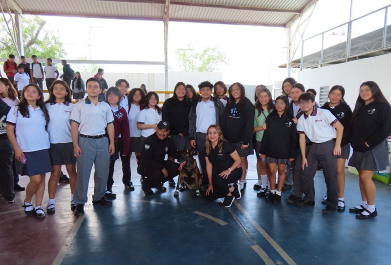 Durante las actividades, las y los estudiantes tuvieron la oportunidad de interactuar con la perrita Yaretzi y la agente canina Vane, especialista en detección de narcóticos, del equipo K-9. Esta dinámica se enfocó en reforzar valores de respeto y cuidado hacia los animales, promoviendo la responsabilidad en el trato de mascotas y animales domésticos.
