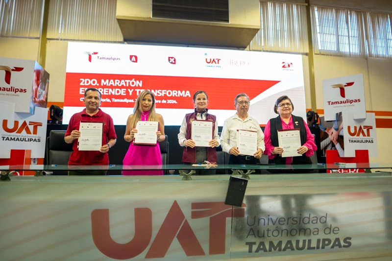 CIUDAD VICTORIA, TAMPS. La Universidad Autónoma de Tamaulipas (UAT) reafirmó su compromiso con la formación de líderes emprendedores al participar activamente en el Segundo Maratón Emprende y Transforma, organizado en colaboración con la Secretaría de Economía y la Secretaría de Educación del estado, así como la Universidad Iberoamericana de Puebla.