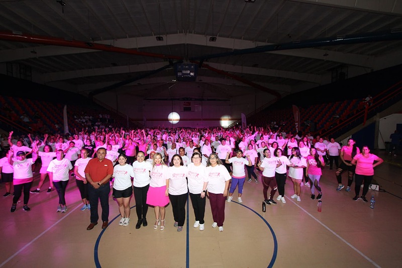 CIUDAD VICTORIA, TAMPS. Como parte de las actividades que la Universidad Autónoma de Tamaulipas (UAT) realiza durante el mes de octubre, dedicado a la sensibilización sobre el cáncer de mama, se llevó a cabo el zumbatón “Energía rosa. Bailando con causa”.