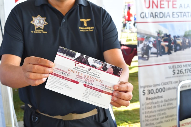 MIGUEL ALEMÁN, TAMPS. Personal de reclutamiento de la Secretaría de Seguridad Pública de Tamaulipas (SSPT) se encuentra participando en la Brigada del Sistema DIF Tamaulipas “Transformando Familias” celebrada en el municipio de Miguel Alemán.