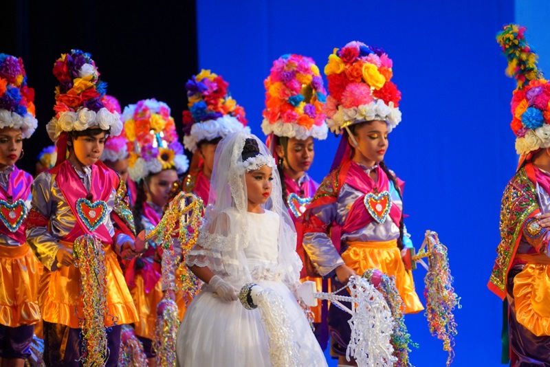 En el teatro principal, el Grupo de Danza Mextli, ofreció un colorido recorrido por las diferentes regiones del país a través de bailables tradicionales que cautivaron al público.