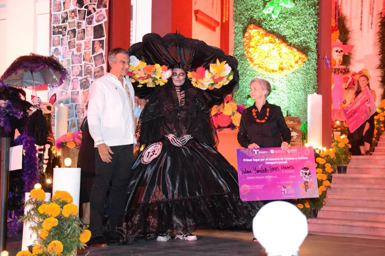 Premiaron a las y los ganadores del Concurso de Catrinas y Catrines; recorrieron altar monumental.