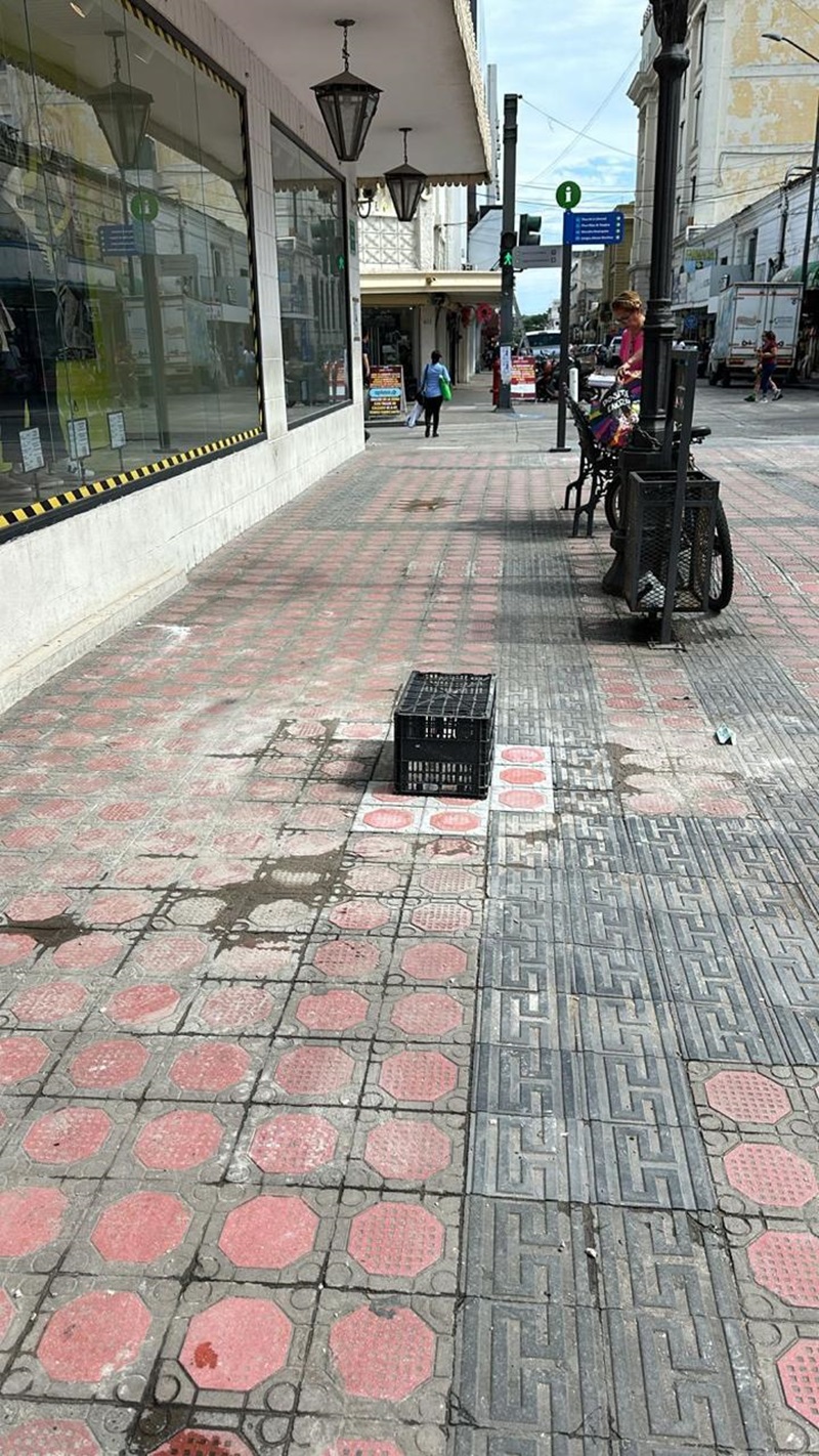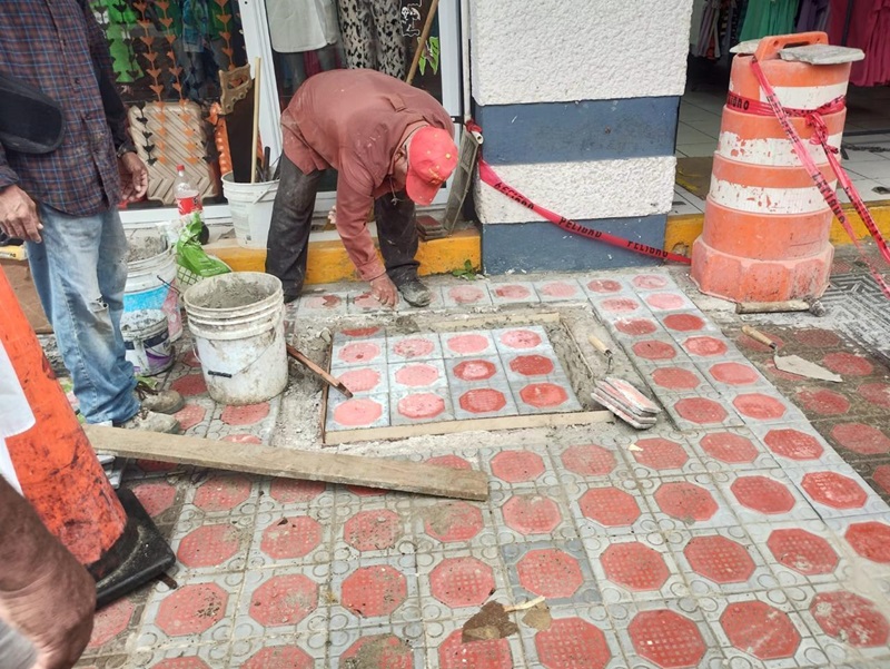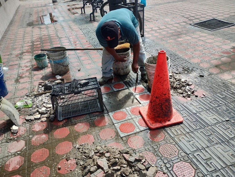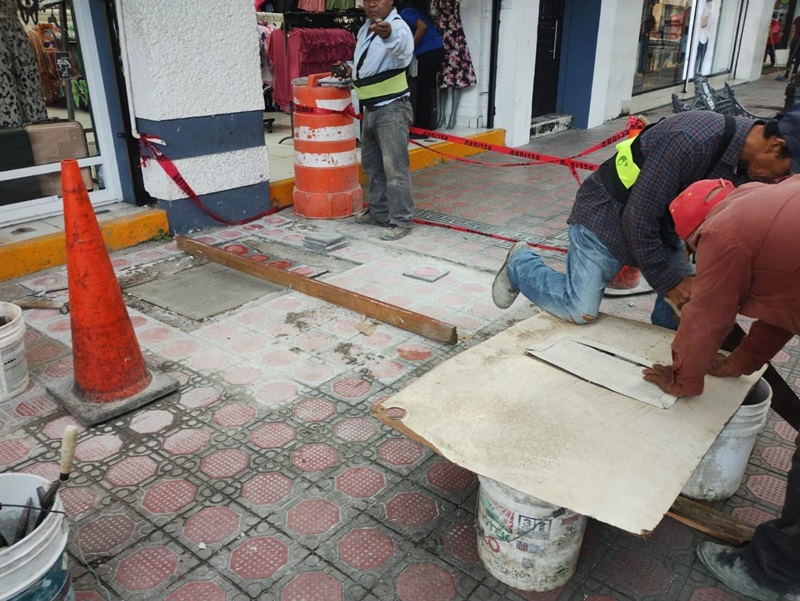 El funcionario dio a conocer que personal a su cargo, lleva a cabo la rehabilitación y reposición de losetas, adoquines y tapas de registro en una amplia franja peatonal del primer cuadro, donde se registra la mayor afluencia de viandantes.