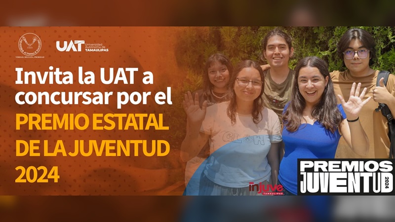 CIUDAD VICTORIA, TAMPS. La Universidad Autónoma de Tamaulipas (UAT) hace extensiva la invitación a participar en la convocatoria del Premio Estatal de la Juventud 2024, una iniciativa del Gobierno del Estado a través de la Secretaría del Trabajo y Previsión Social y el Instituto de la Juventud de Tamaulipas, que busca reconocer el talento y contribuciones de las y los jóvenes en nuestra sociedad.