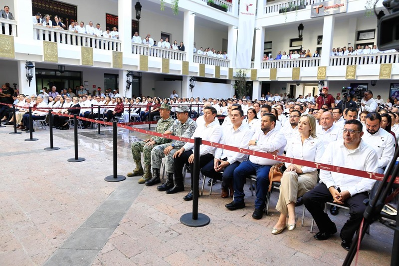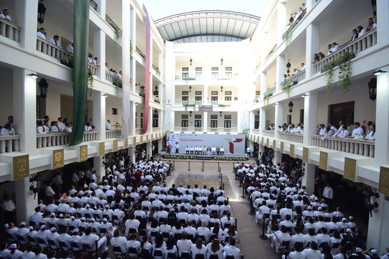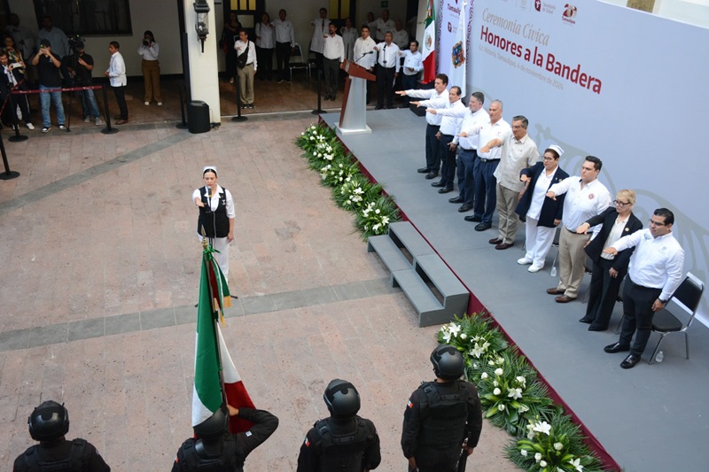 En esta ceremonia cívica, el gobernador estuvo acompañado por: Humberto Prieto Herrera, presidente de la Junta de Coordinación Política del Congreso del Estado; David Cerda Zúñiga, presidente del Supremo Tribunal de Justicia; Irma Barragán Alvarado, subsecretaria de Enfermería; Magaly Deándar Robinson, presidenta de la Mesa Directiva del Congreso; Marggid Rodríguez Avendaño, coordinador Estatal de IMSS Bienestar; Federico Marín Martínez, delegado del IMSS, y Ernesto Lavín Hernández, subdelegado médico del ISSSTE, así como por funcionarios del gabinete estatal, integrantes de la mesa de seguridad y trabajadores de las diferentes dependencias del gobierno estatal.
