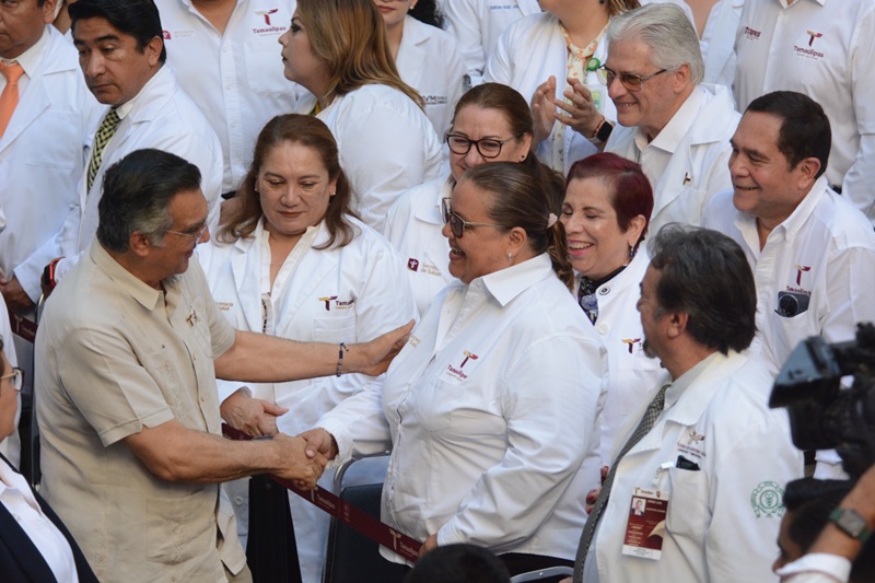 “Nunca como ahora y siendo yo compañero de ustedes en el sector salud, hemos visto que desde la política nacional haya tanto empeño y tanta dedicación para mejorar el sistema de salud que merecemos los mexicanos y mexicanas. Así es que nosotros tenemos que sumarnos a este gran esfuerzo nacional y distinguirnos en Tamaulipas como médicos y médicas, trabajadores de la salud, para que podamos salir adelante y brindar estos niveles”, manifestó.