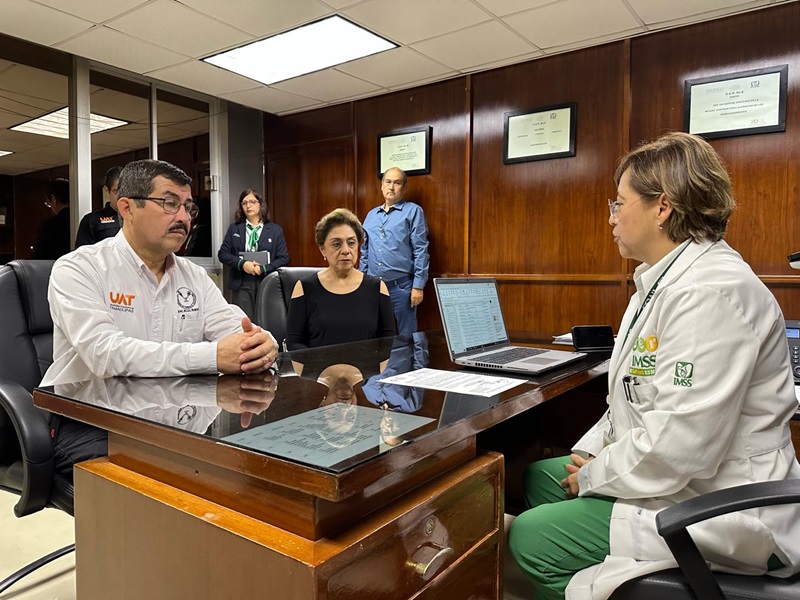 CIUDAD MADERO, TAMPS. El rector de la Universidad Autónoma de Tamaulipas, Dámaso Anaya Alvarado visitó a la estudiante Melanie y su familia en el Hospital General IMSS No.6 en Ciudad Madero, tras el caso que conmocionó a la comunidad universitaria.